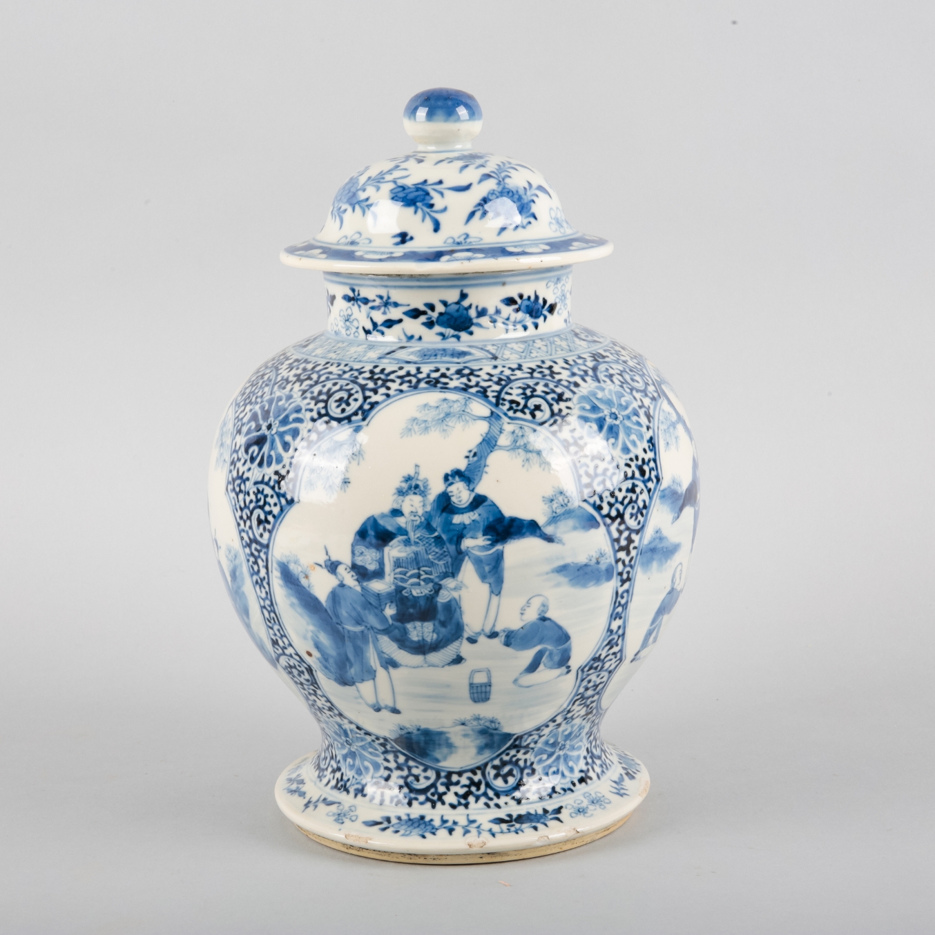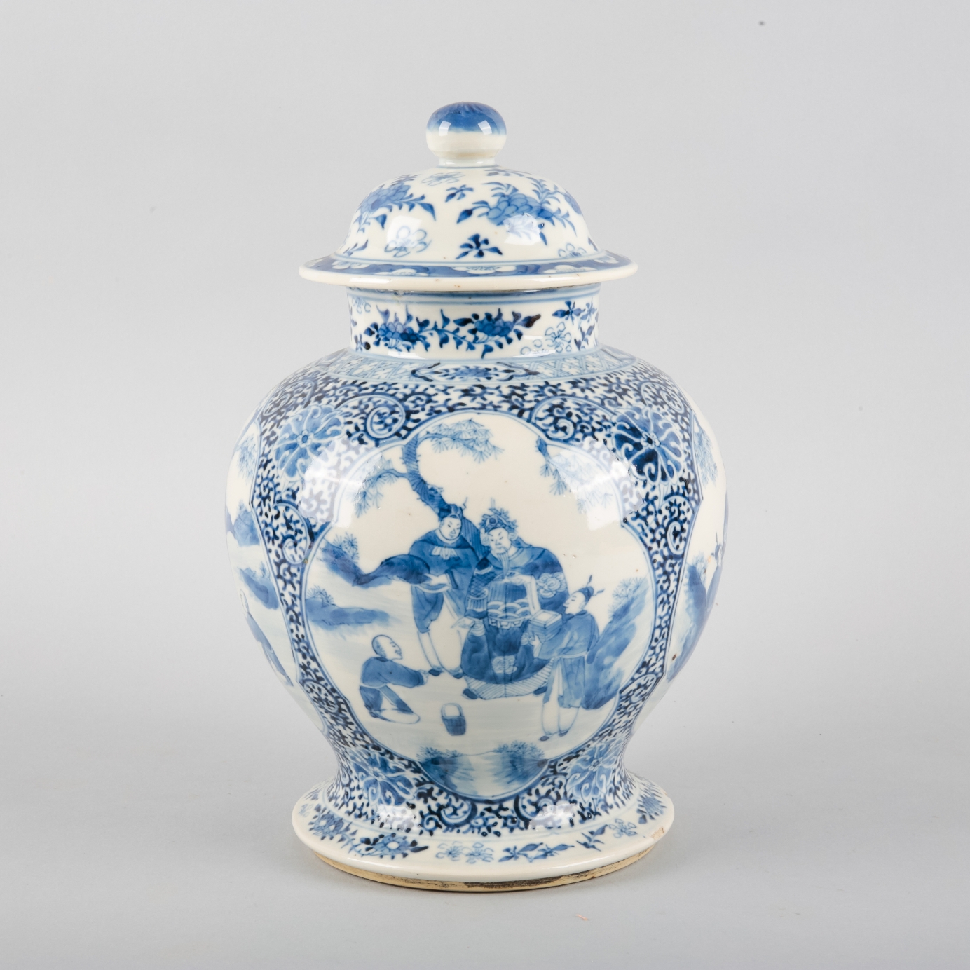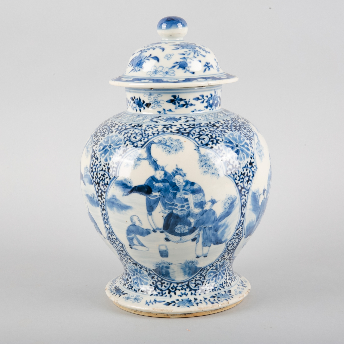 Both covers associated. One is chipped to the rim and interior rim. The other is chipped to the finial.