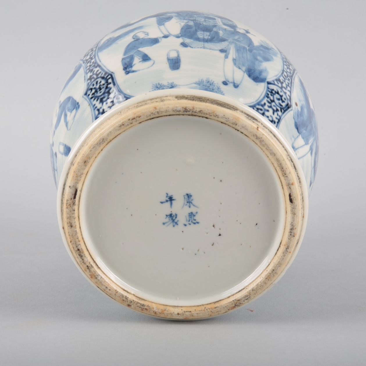 Fritting and chips to the rim and foot. A chip and small hairline issuing from the rim. Surface wear and light scratching to the body. Small firing faults evident. Wear to the foot.