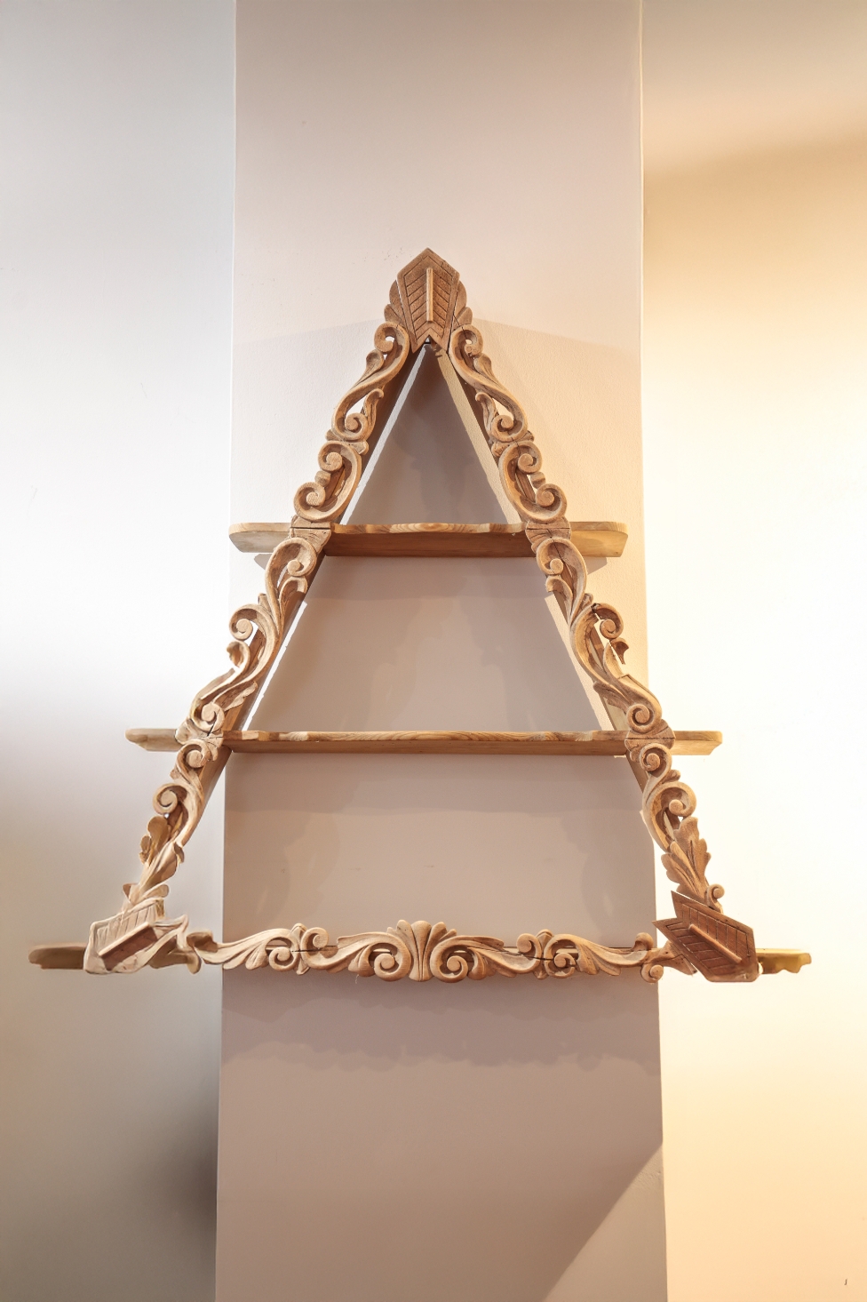 A 19TH CENTURY DANISH AMAGER PINE TRIANGULAR THREE TIER WALL SHELF