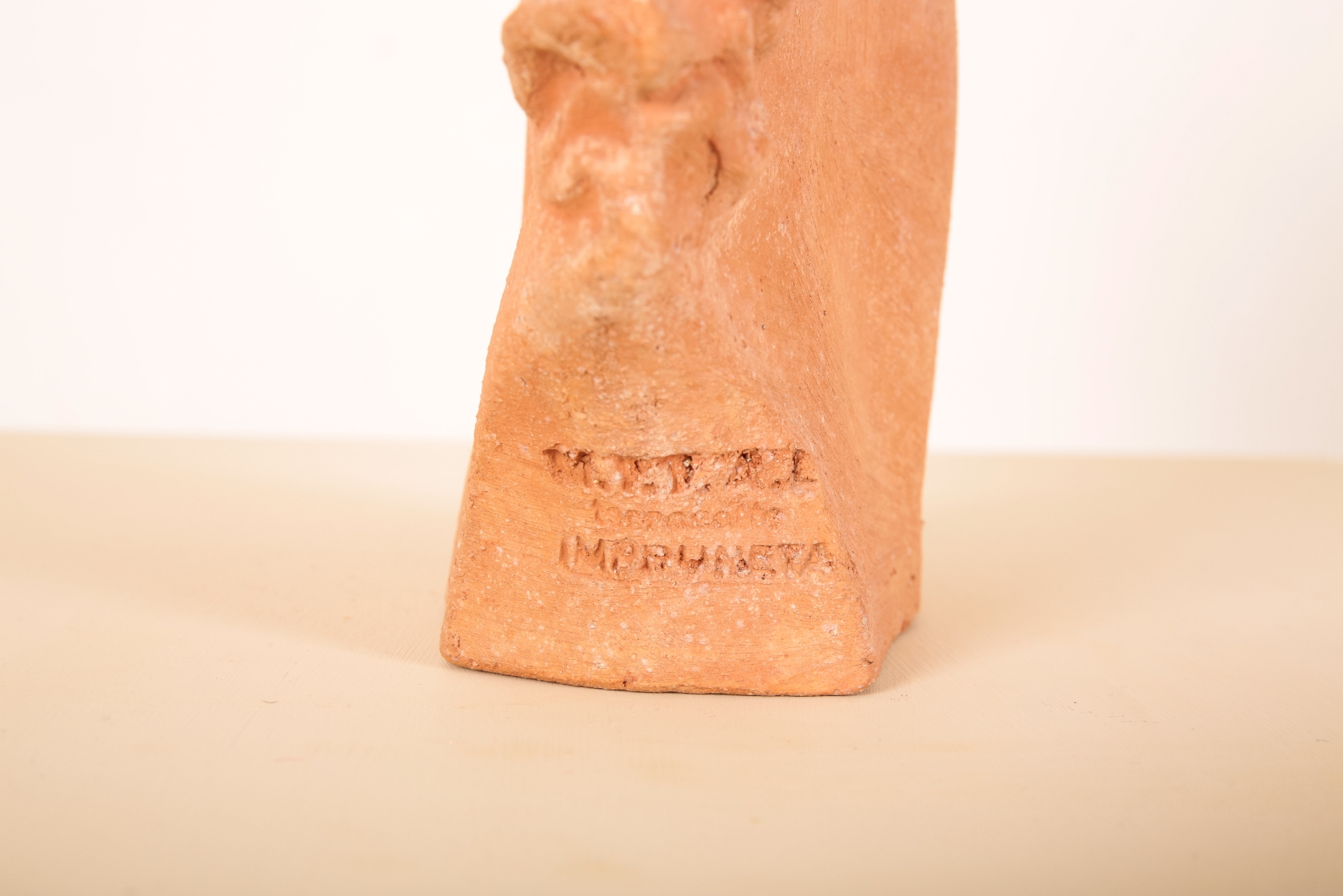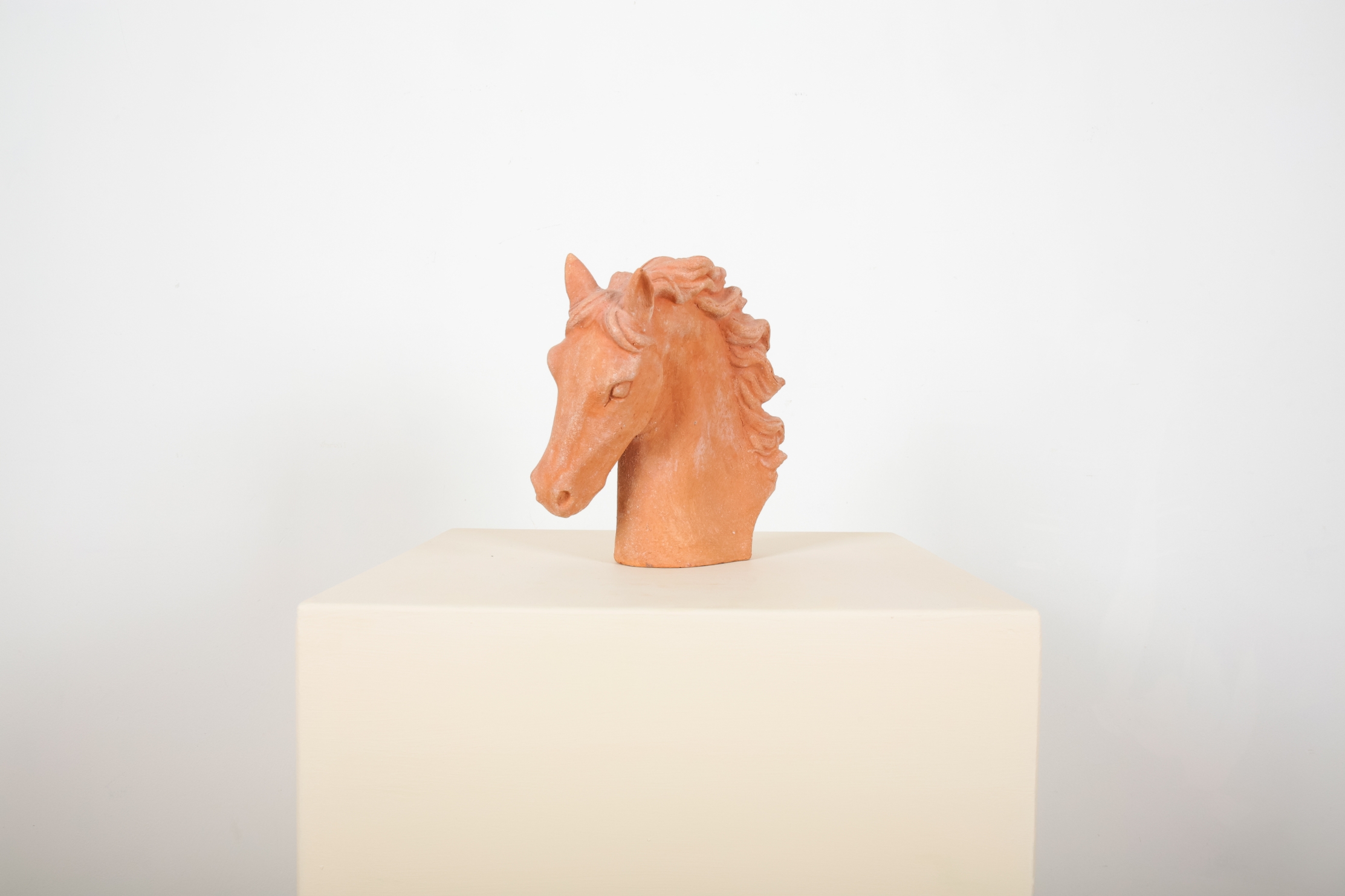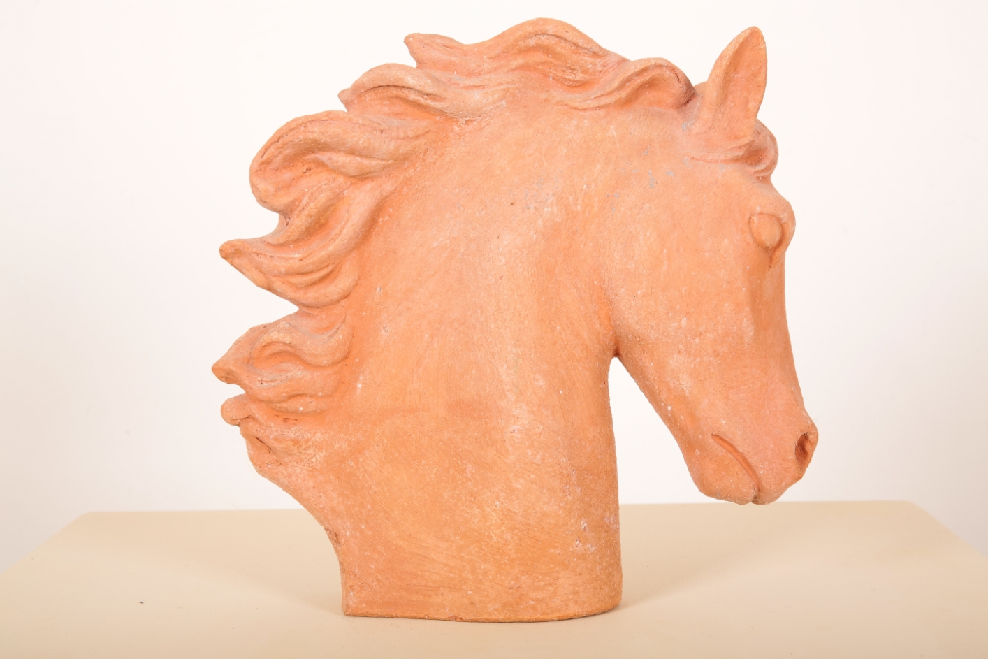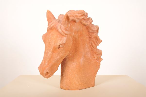 A TERRACOTTA HORSE'S HEAD BY 'MARIANI M.T.A.I. TERRECOTTE IMPRUNETA'