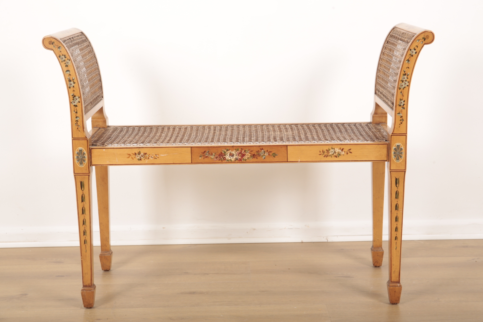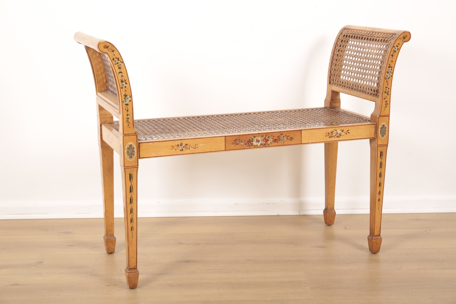 A SATINWOOD POLYCHROME PAINTED WINDOW SEAT