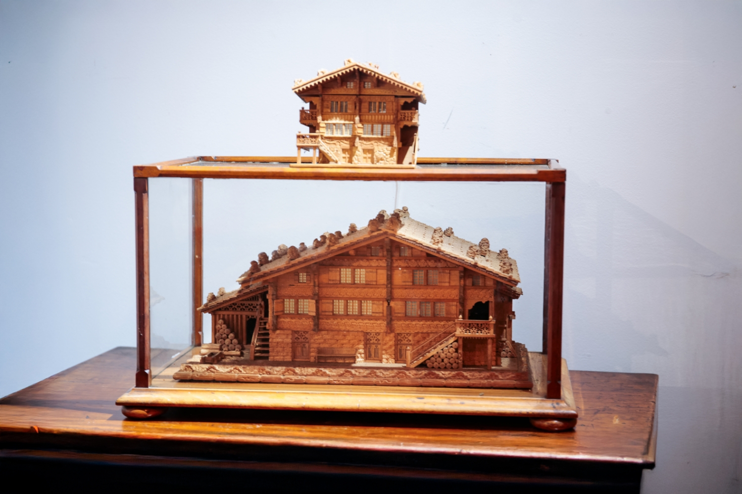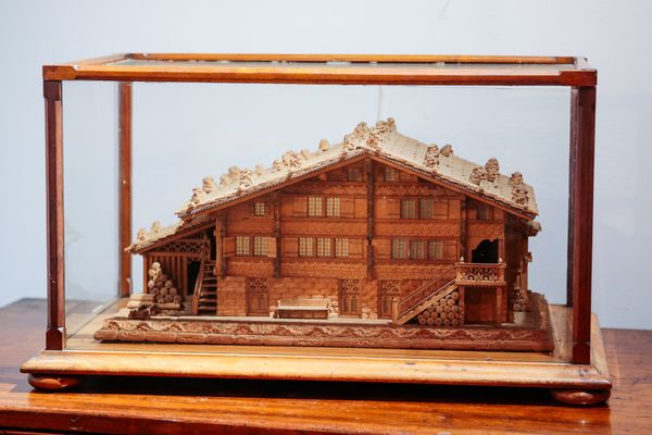 A SWISS PINE CHALET JEWELLERY BOX