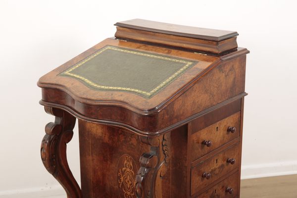 with satinwood inlays to the top and recessed door beneath, with carved supports and terminating on bun feet, 88cm high x 53cm wide x 56cm deep