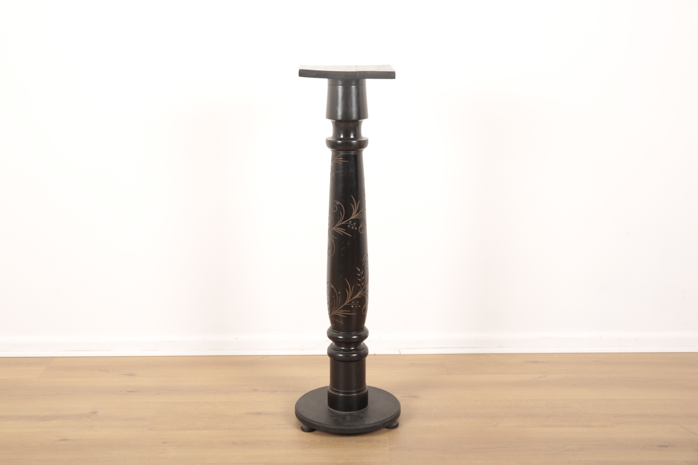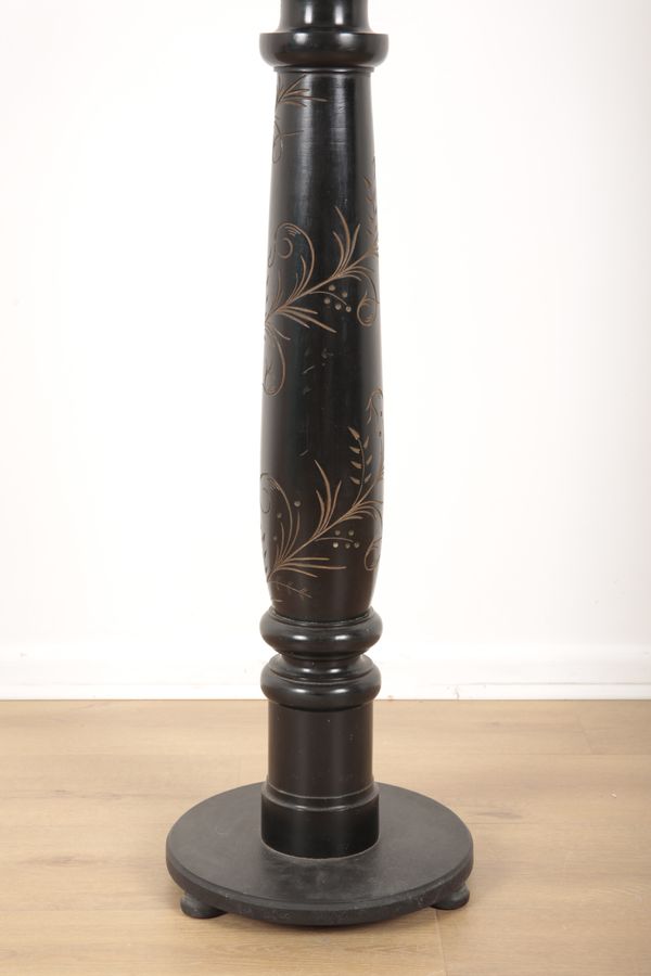 AN EBONISED WOOD COLUMNAR JARDINIERE STAND