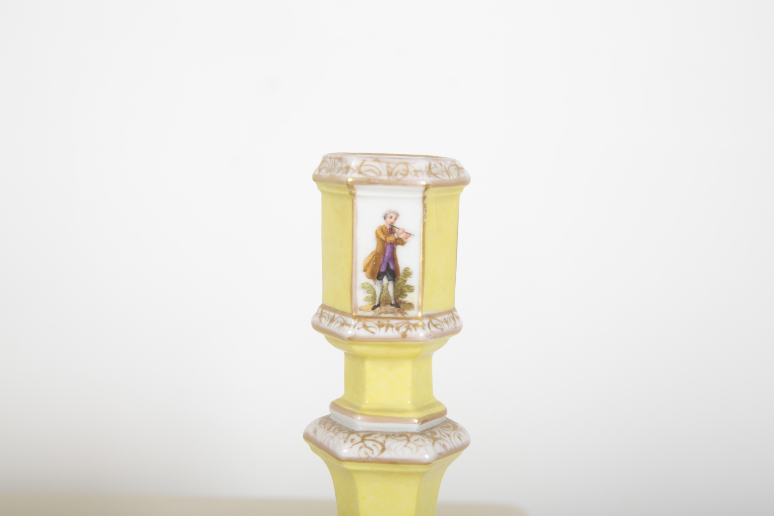 A PAIR OF KPM PORCELAIN CANDLESTICKS