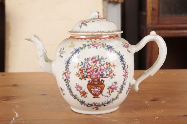 A CHINESE EXPORT PORCELAIN SPHERICAL TEAPOT AND COVER