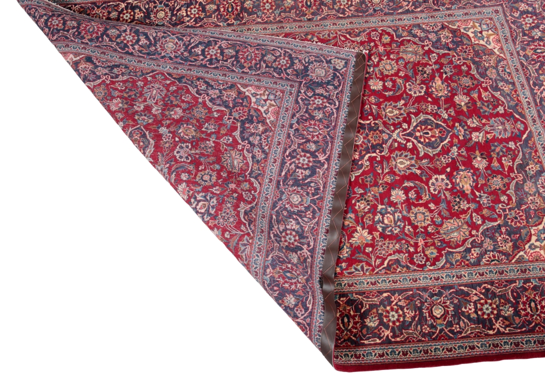 a red central ground with floral decoration, all within conforming borders, 208cm x 143cm