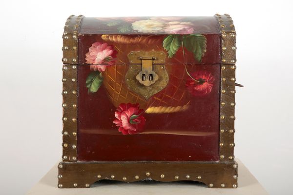 A SMALL DOMED POLYCHROME PAINTED WOOD CHEST