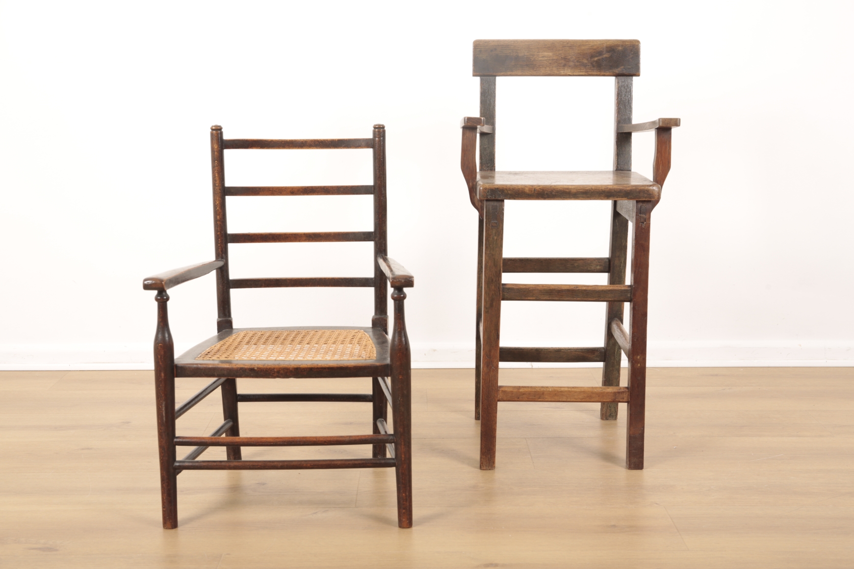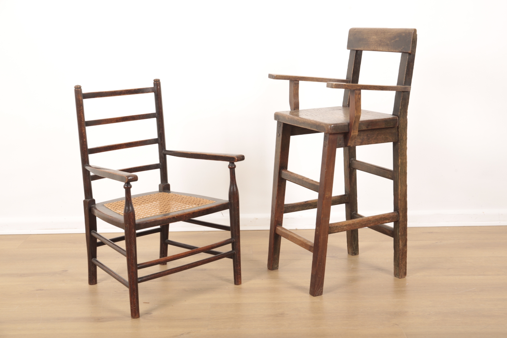 78cm high; together with a 1920s child’s oak ladder back chair with caned seat (2)
