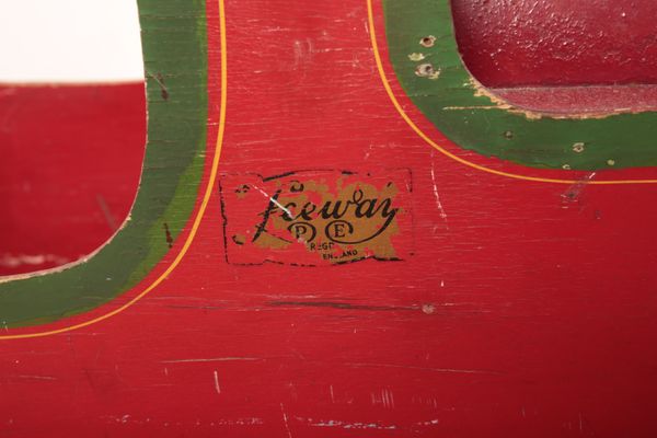 A PLYWOOD 'LEEWAY FLYER' PEDAL CAR MODELLED AS A TRAIN LOCOMOTIVE BY 'PATTERSON EDWARDS LTD.'