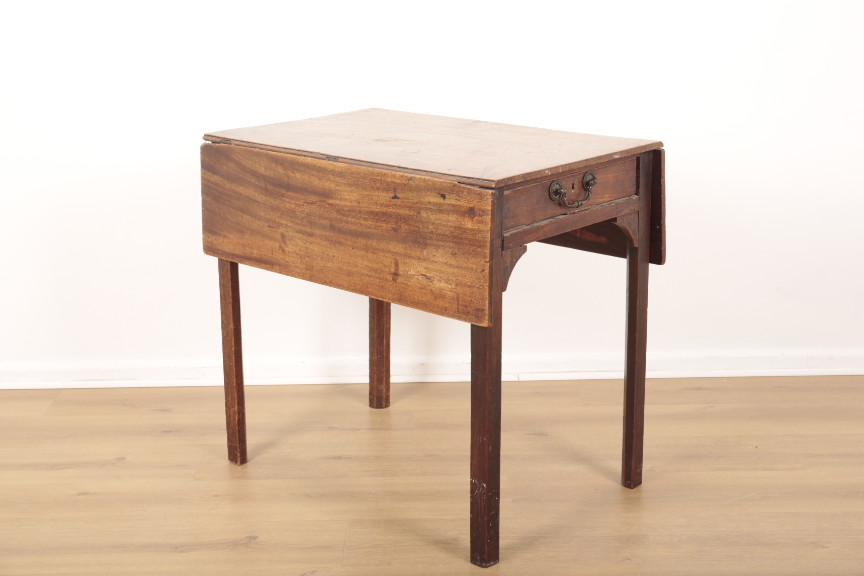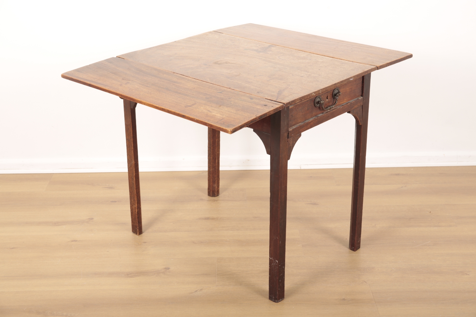18th/19th century, a singular frieze drawer flanked by drop leaves and four canted square legs, 70cm high x 76cm wide x 50cm deep (closed)