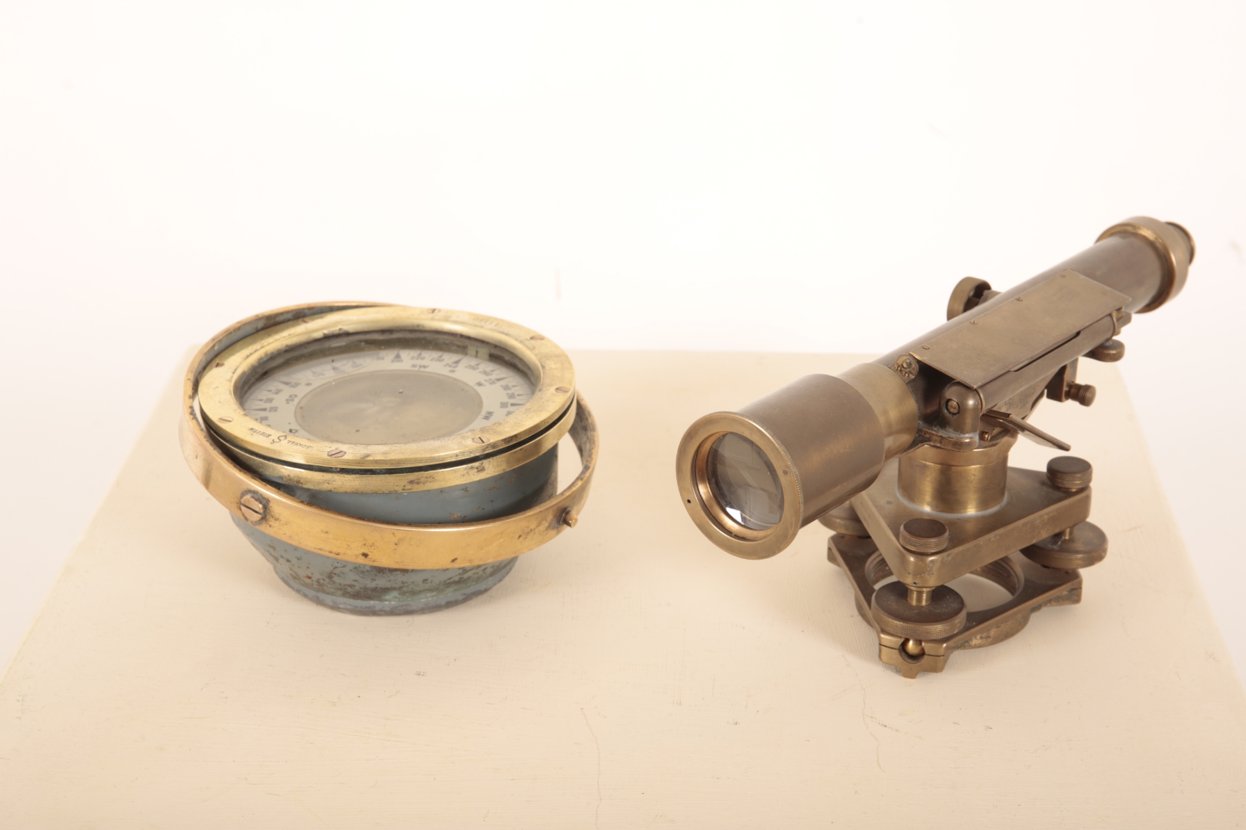 stamped '11150', 9.5cm high x 19cm diameter; together with a solid brass surveyor's tool by 'M.D.S. LTD. LONDON' (2)