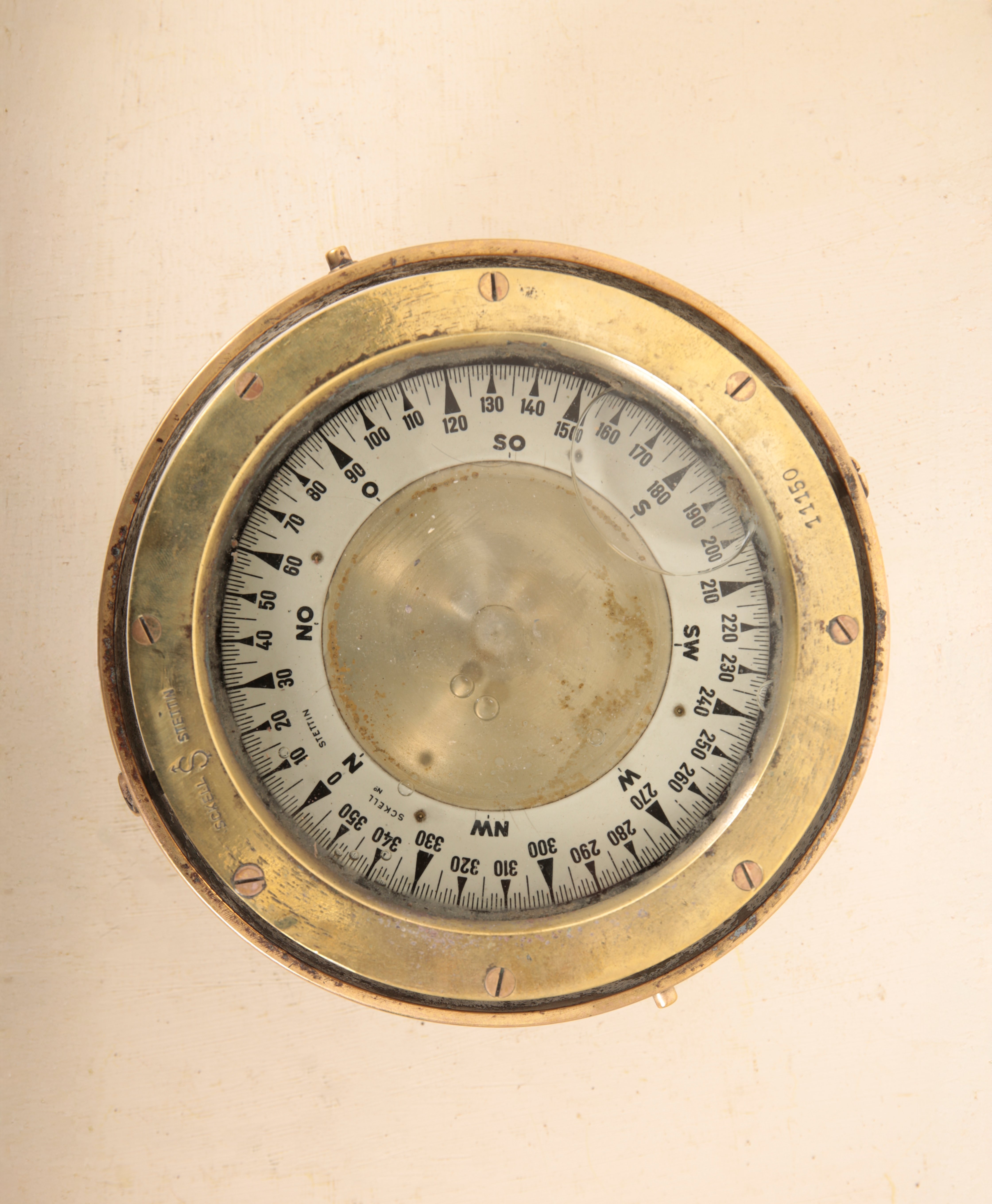 A 'SCKELL STETTIN' GIMBALL SUSPENSION BRASS SHIP'S COMPASS