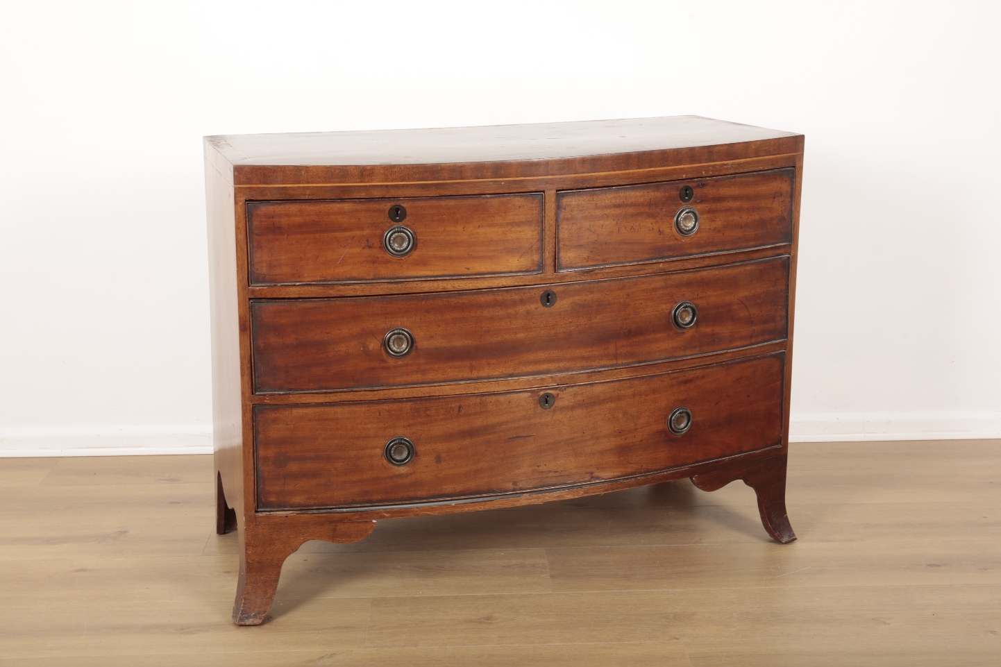 A GEORGE IV MAHOGANY BOW FRONT CHEST OF DRAWERS