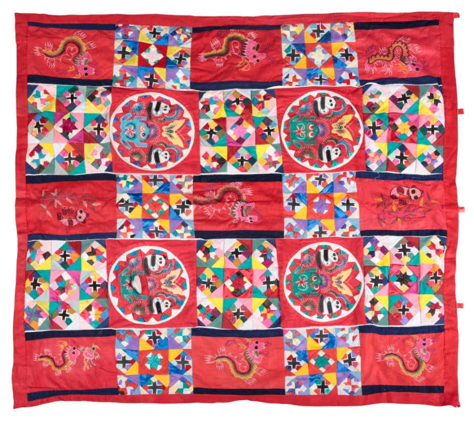 A QUILTED AND EMBROIDERED REVERSIBLE WALL HANGING