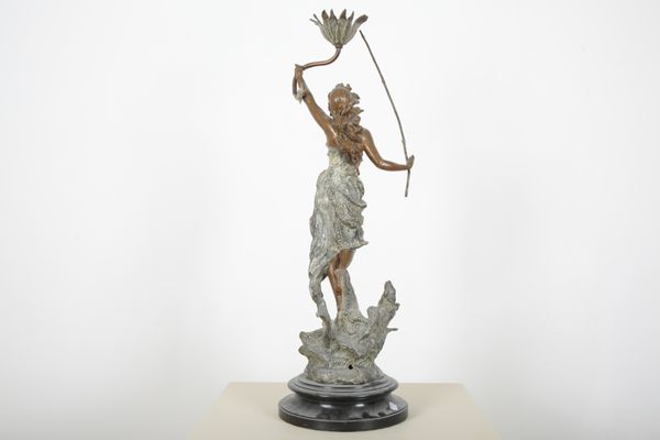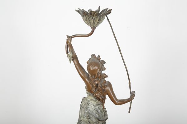 A SPELTER ART NOUVEAU STYLE FIGURAL LAMP