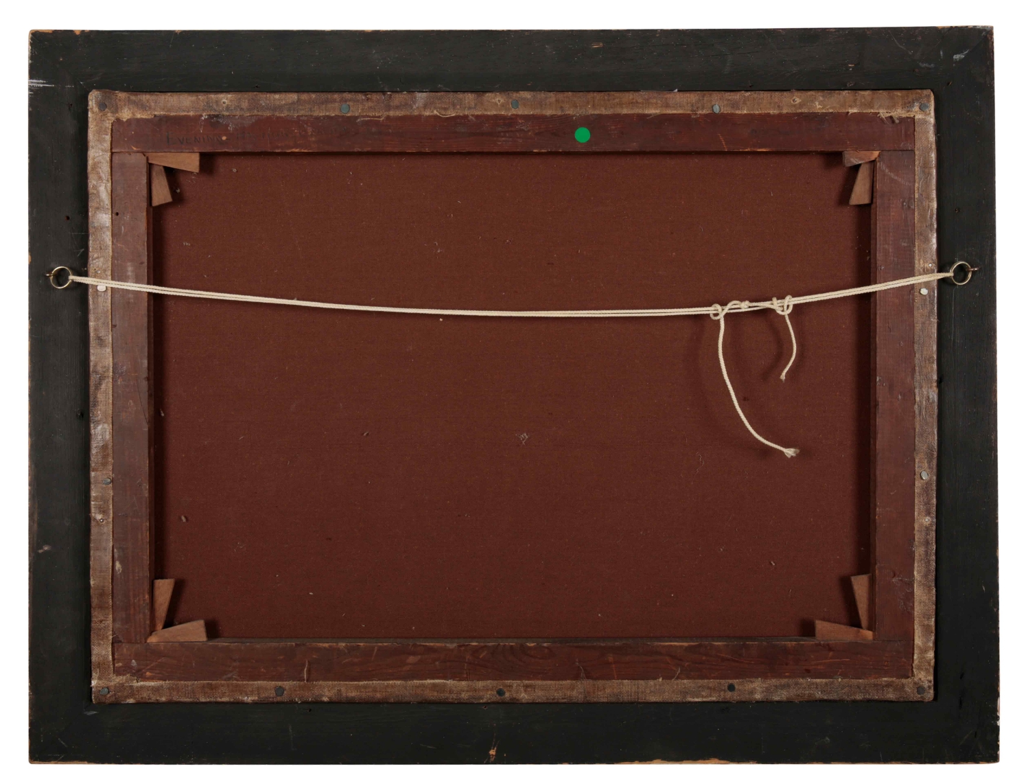 The painting is generally in good condition, but bears a few issues. The picture surface is stable, with moderate craquelure throughout and areas where the indentation of the stretcher is visible. The painting has been relined, but not recently, with good canvas surface tension. There is some discolouration to the canvas, probably caused by smoke damage and hanging conditions. There are also some areas of damage and loss to the gilt frame. Please see additional images available on request.