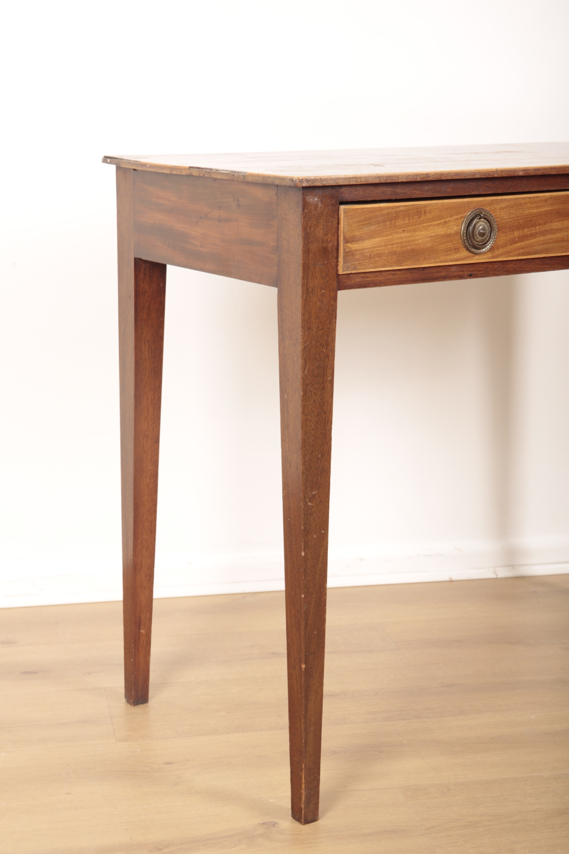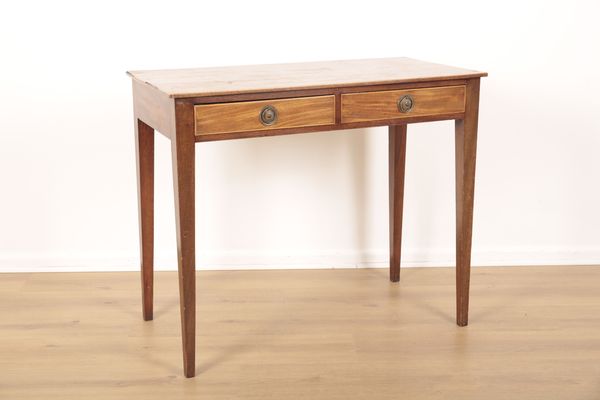 The table appears to be in fair condition. There is a loss of moulding to the top edges, in particular to the left side. There is considerable distressing to the top, scratches and discolouration are present. Small splits to the drawer interiors. Expected knocks and indentations to the legs.