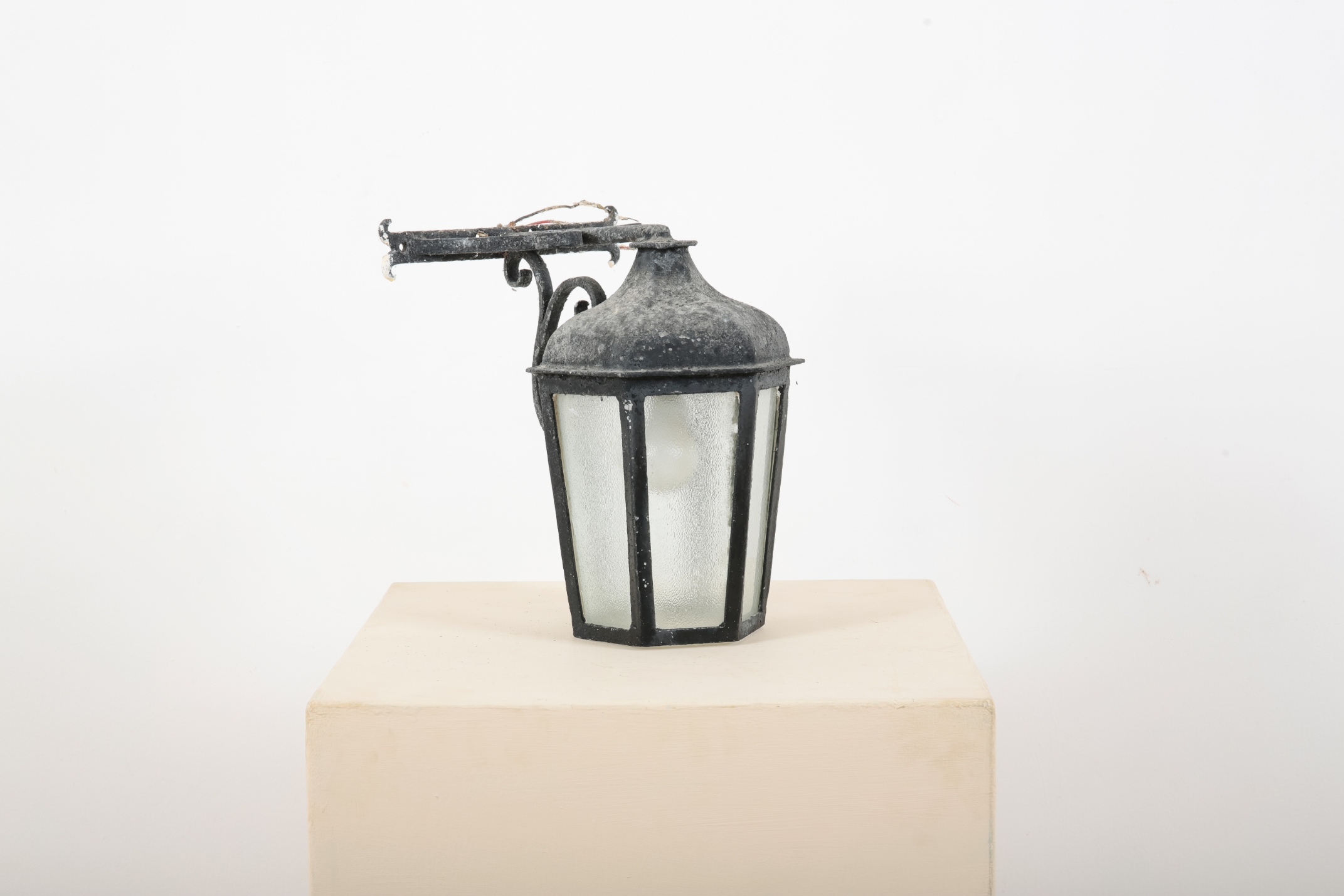 the scrolled wall-mounted suspension post integral, 34cm high x 26.5cm wide x 34cm deep (including post)