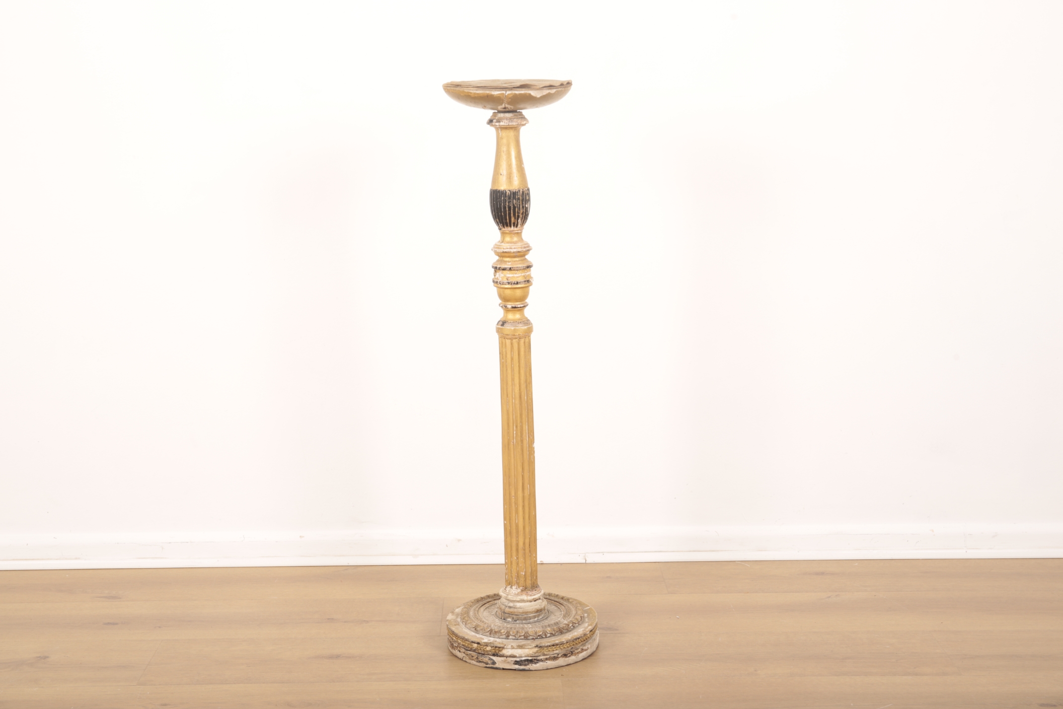 19th century or later, the reeded baluster stem terminating on a stepped circular plinth, 90cm high x 25cm diameter
