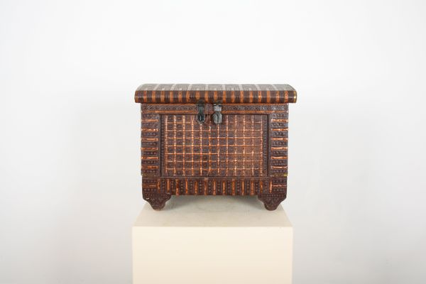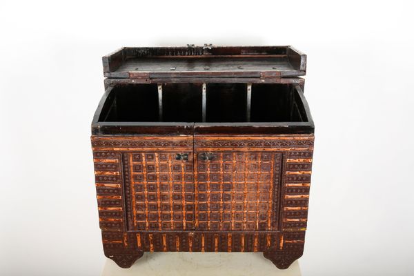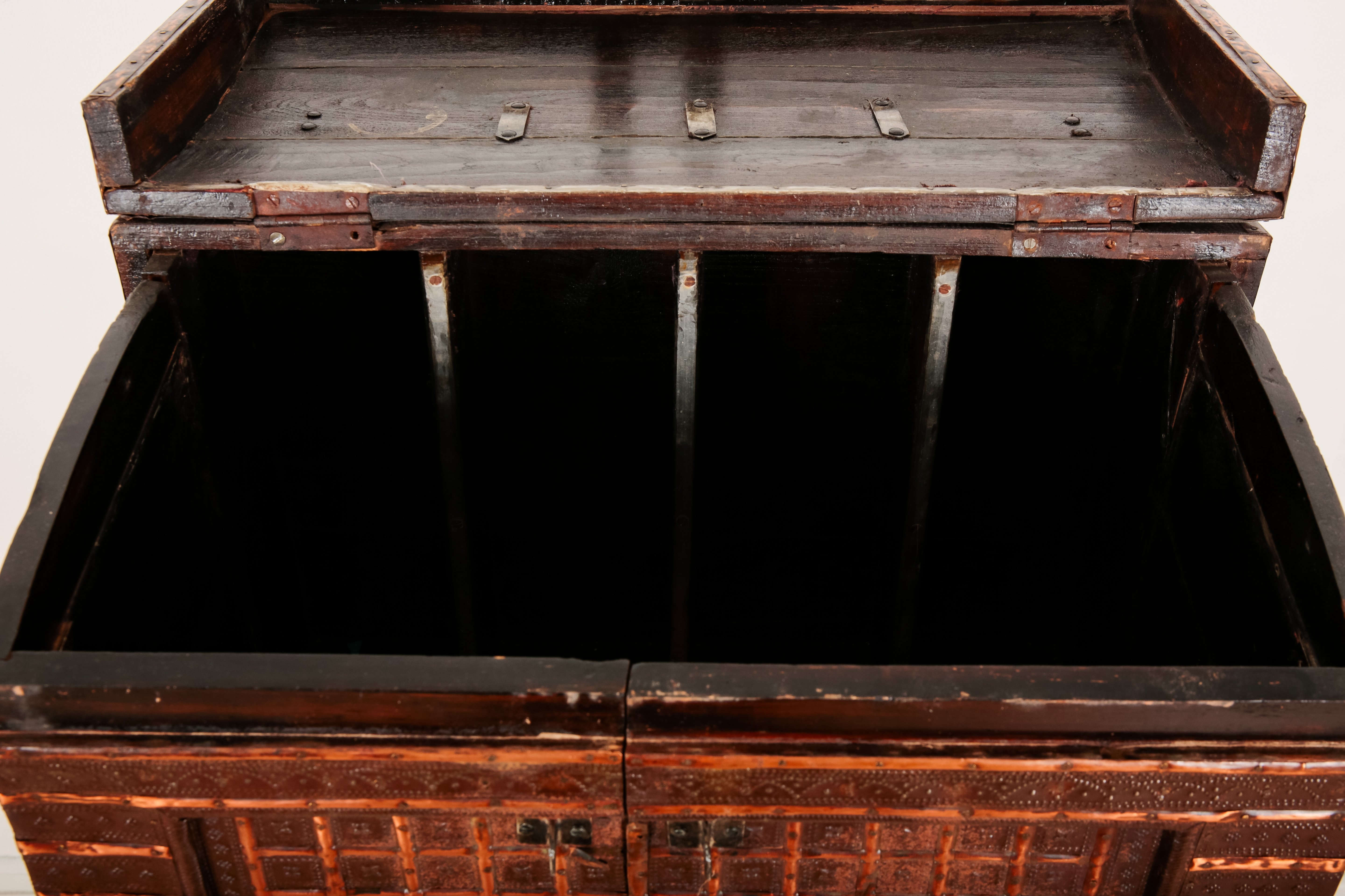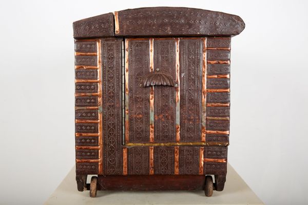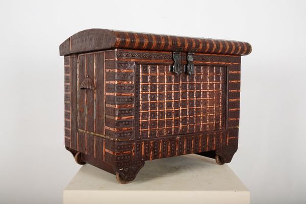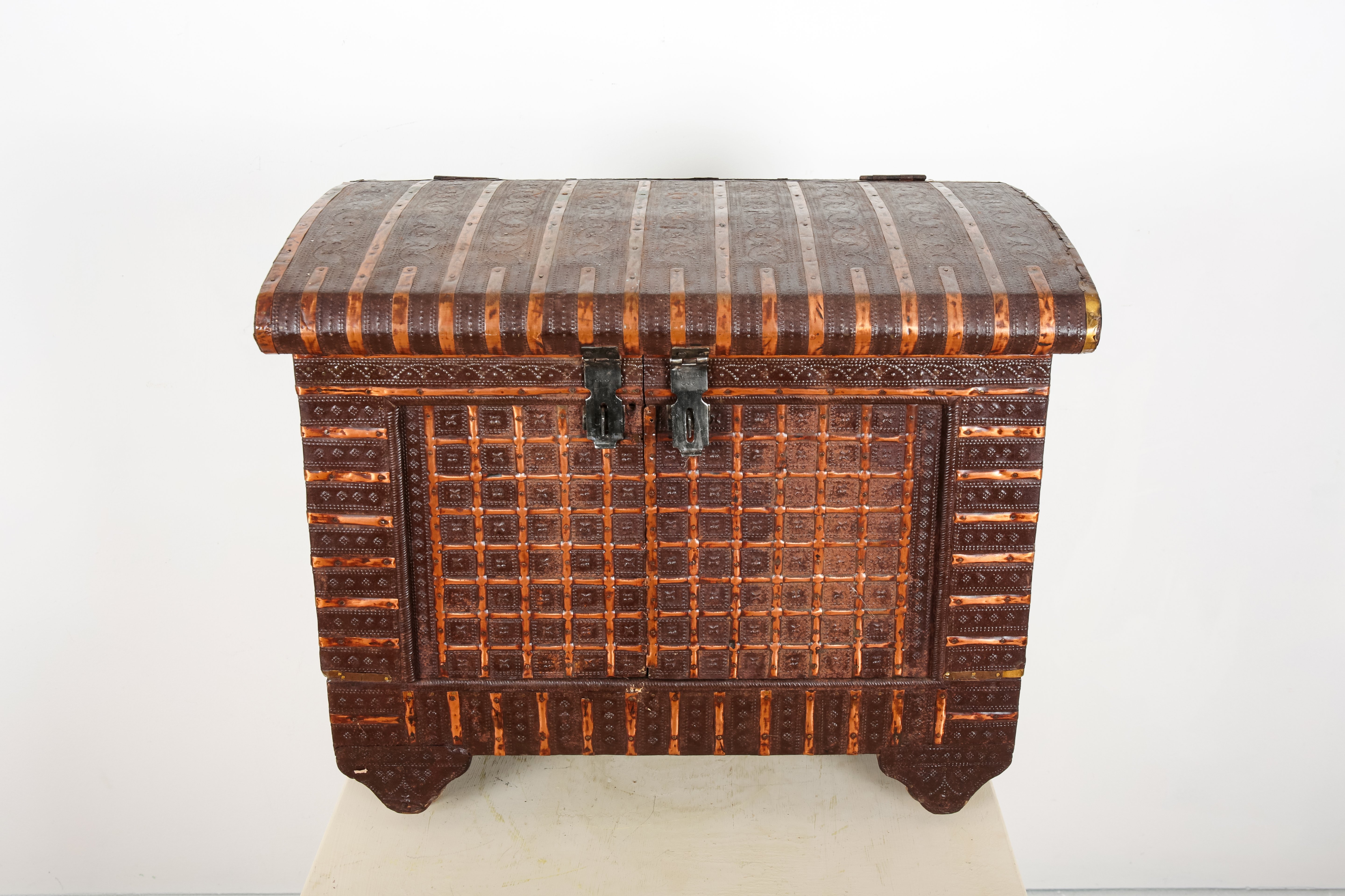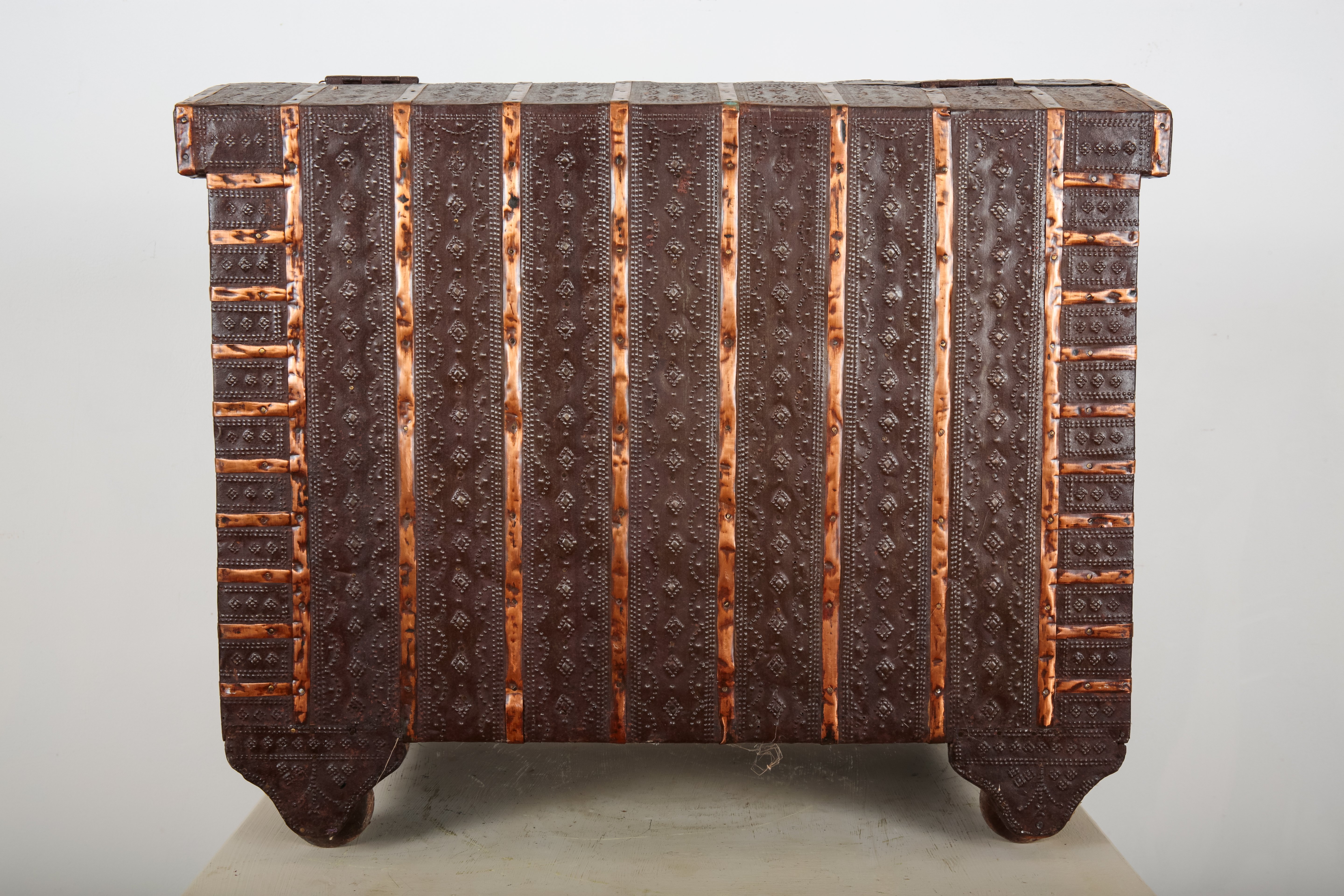 AN INDIAN REPOUSSE METAL CLAD WOOD CHEST