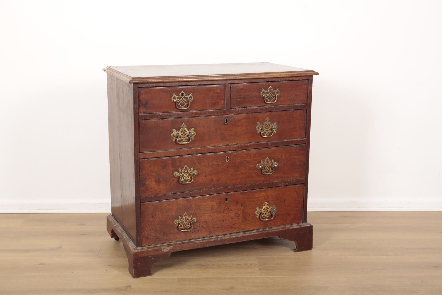 The top is scratched and stained in places. One corner of the moulded edge has been held together with tape and will need restoring.