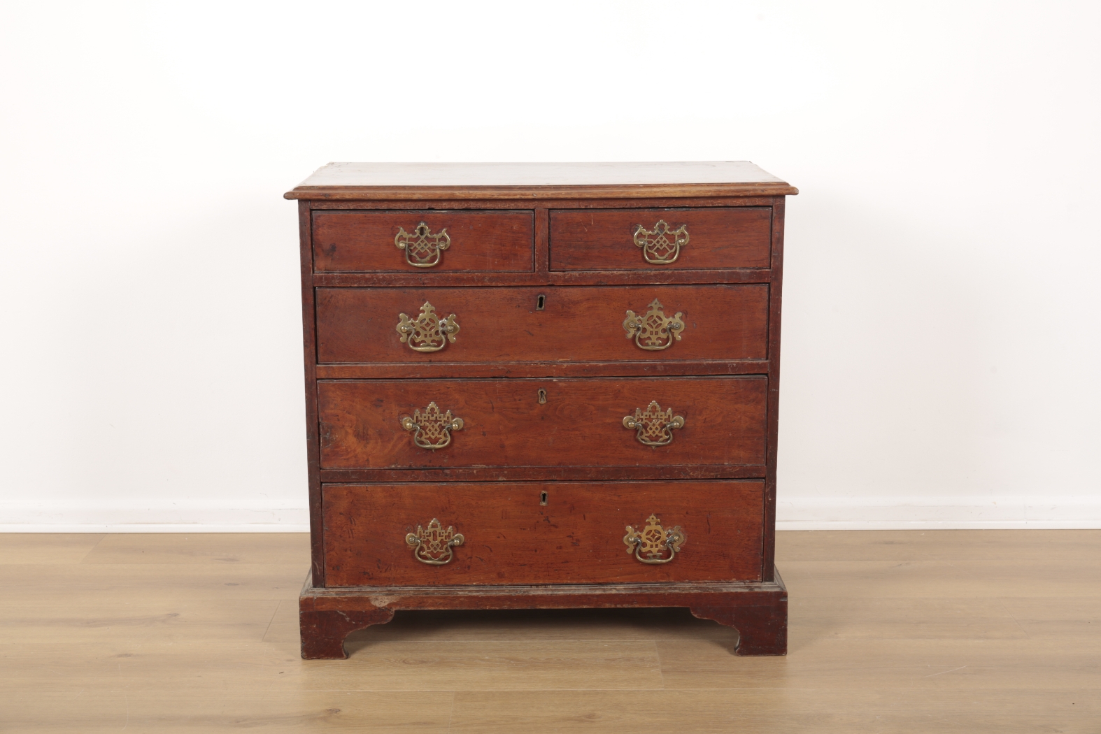 The drawers all move smoothly. Some are stained lightly.