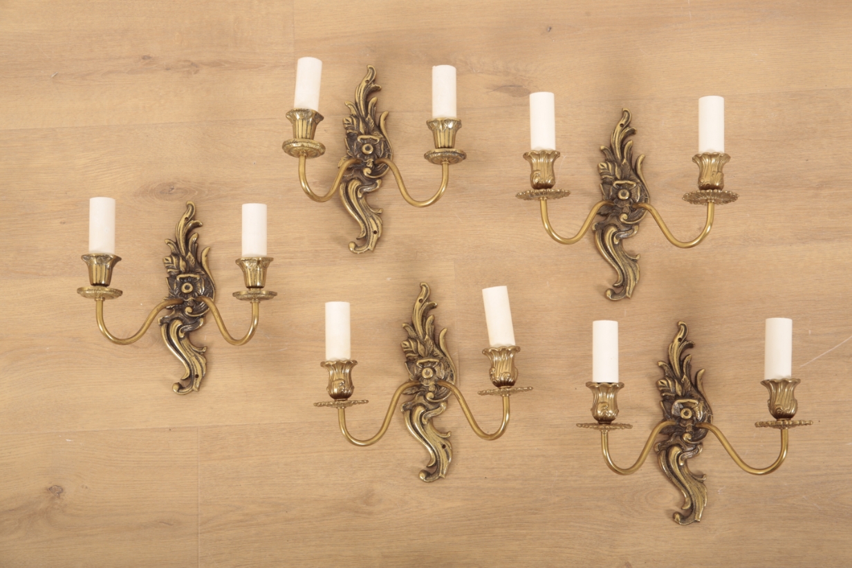 A GROUP OF FIVE LOUIS XV STYLE METAL LIGHT FITTINGS