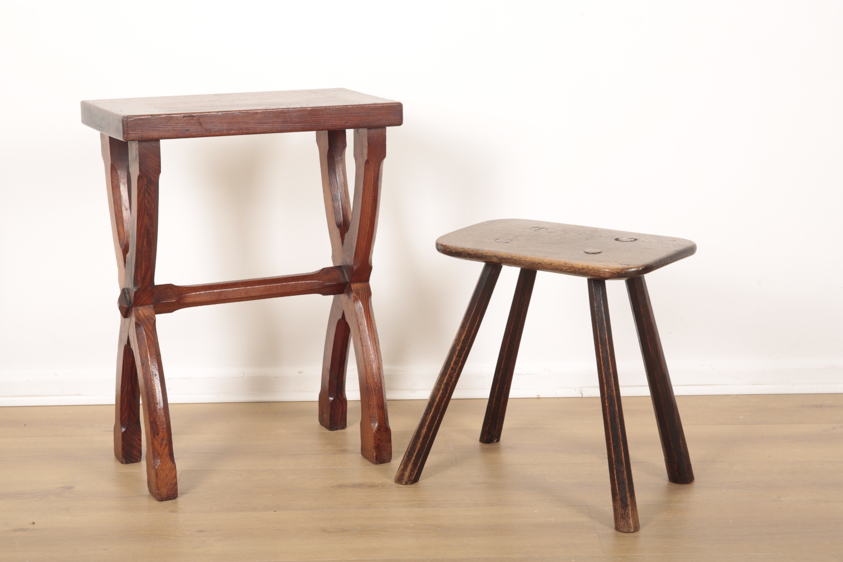 AN ELM RECTANGULAR STOOL OF 18TH CENTURY DESIGN