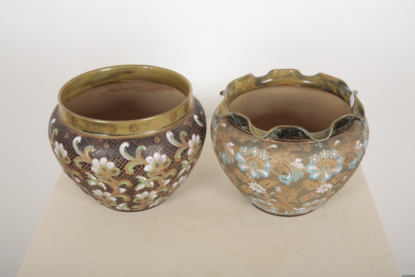 TWO 19TH CENTURY DOULTON LAMBETH ‘SLATER’S PATENT’ JARDINIÈRES