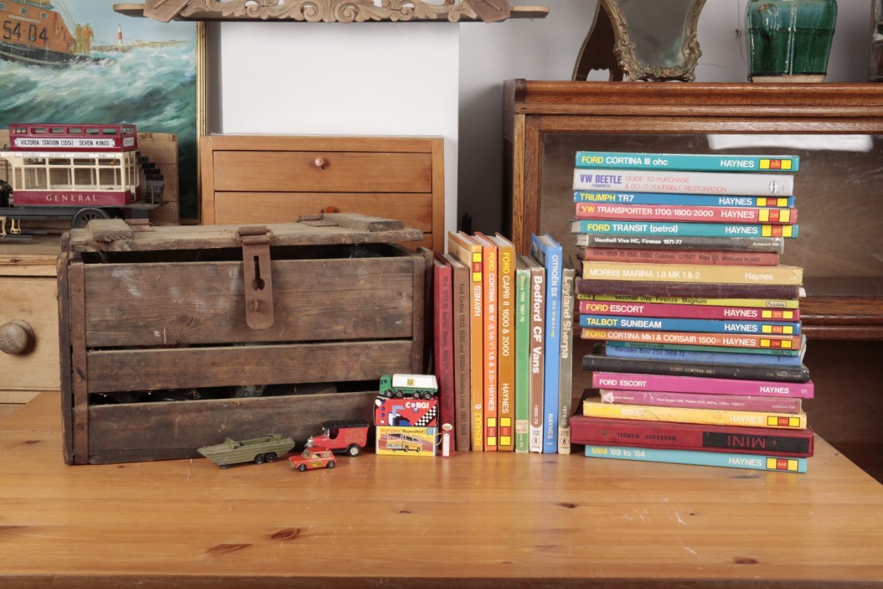 Various states of condition, the speedometers and clocks do not appear to be working. The books have foxing and damage to dust covers. Additional speedometers have been photographed.