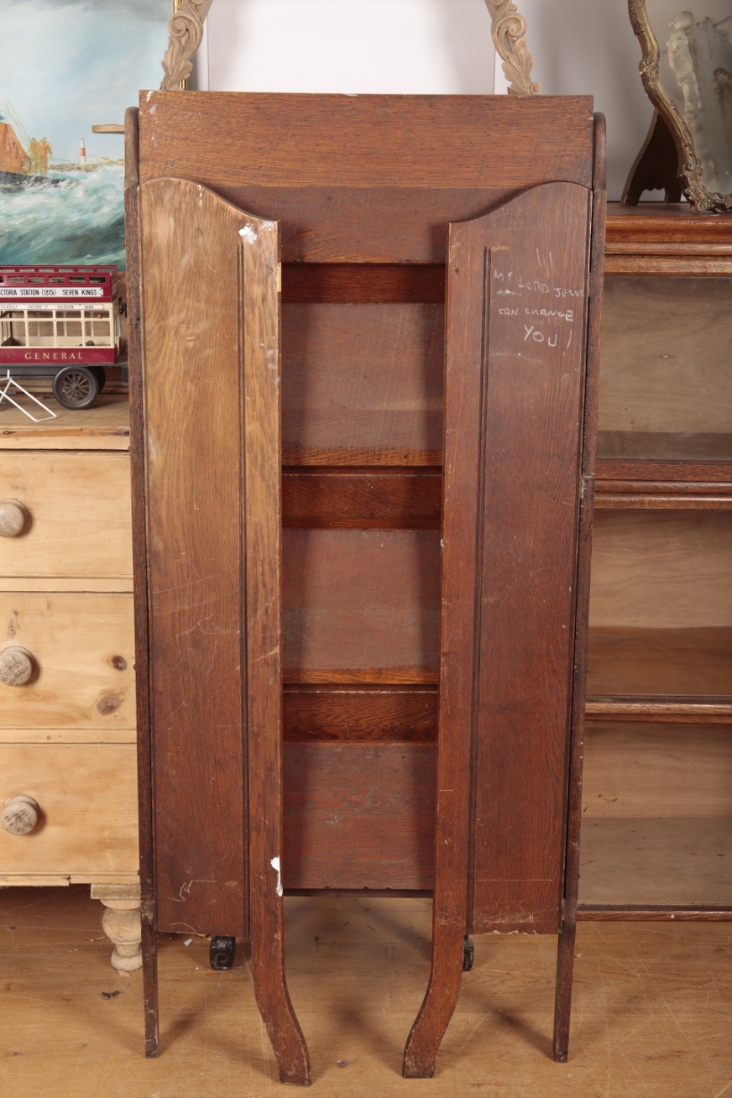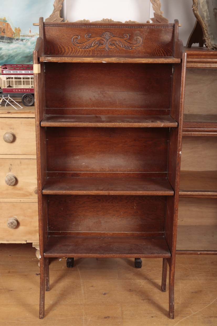 AN EDWARDIAN OAK FOLDING BOOKCASE