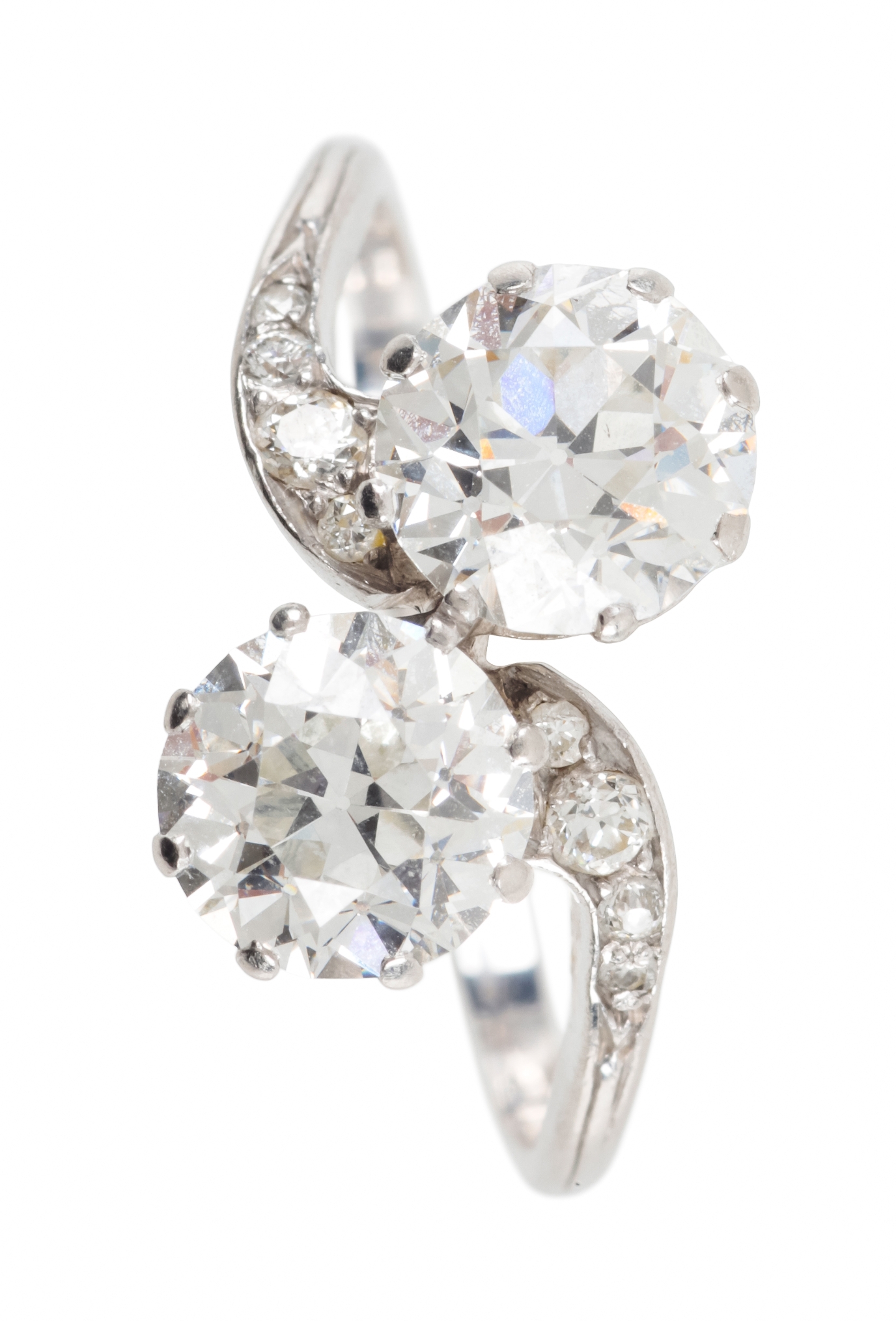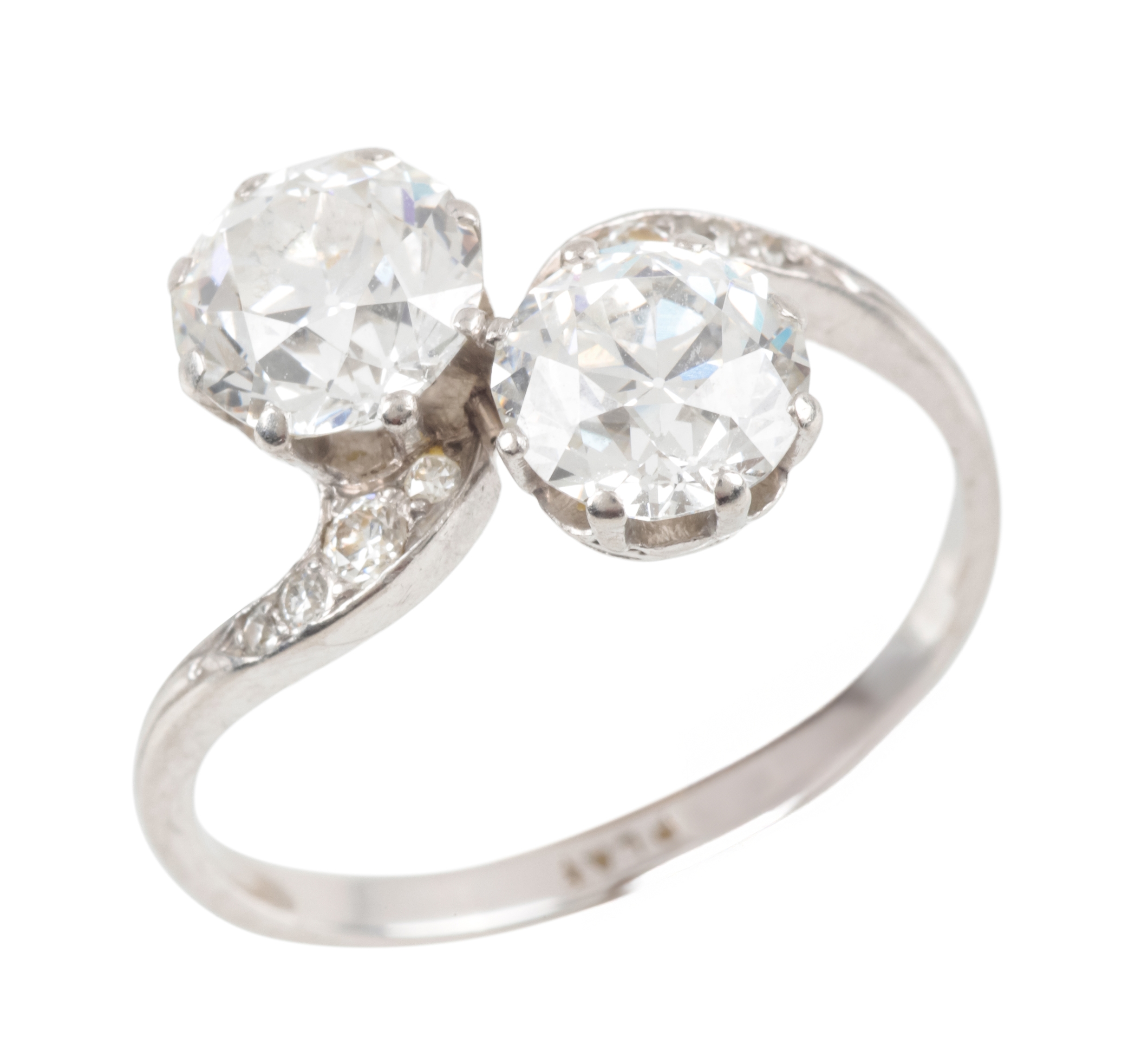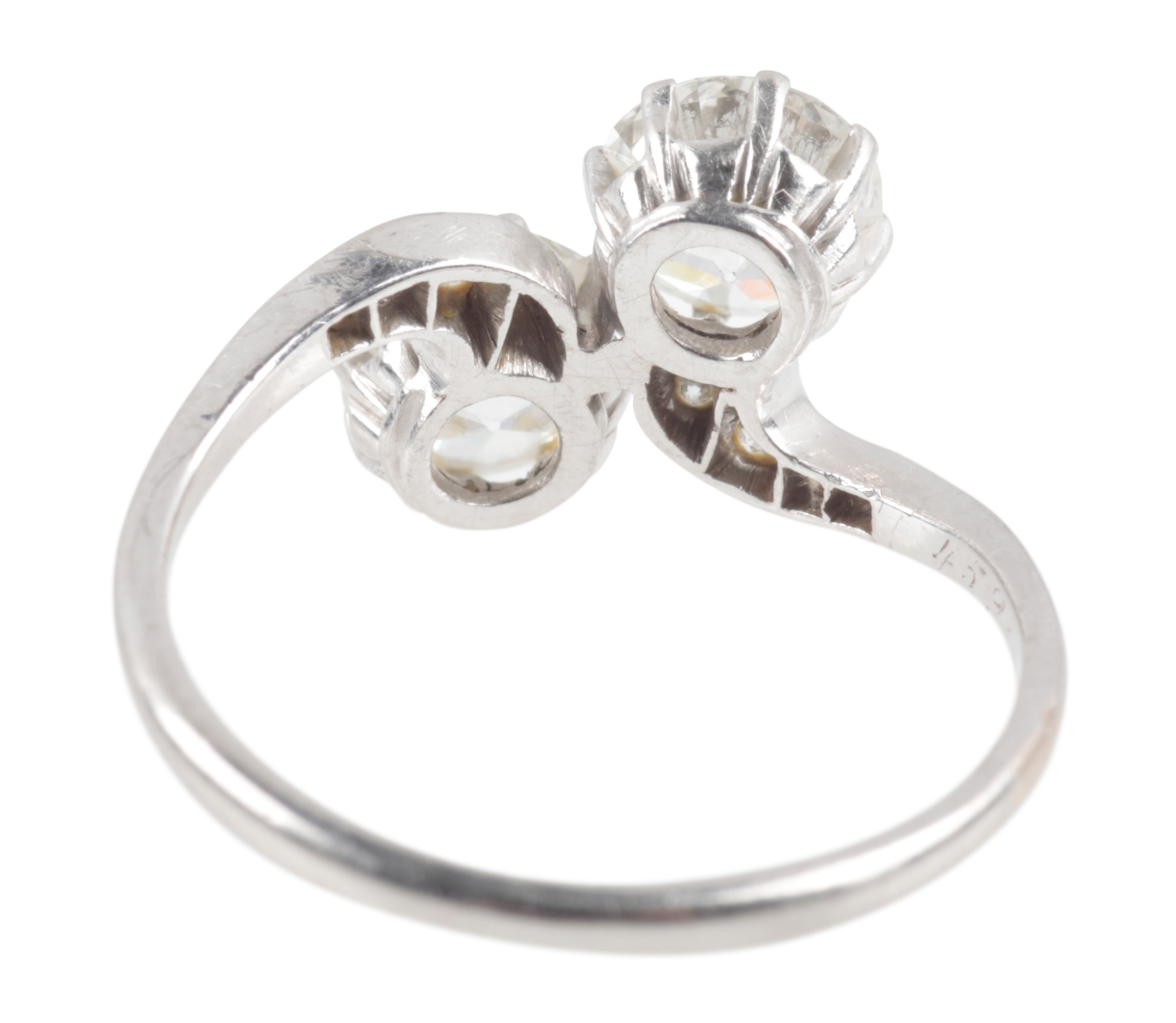 A TWO STONE DIAMOND CROSSOVER RING