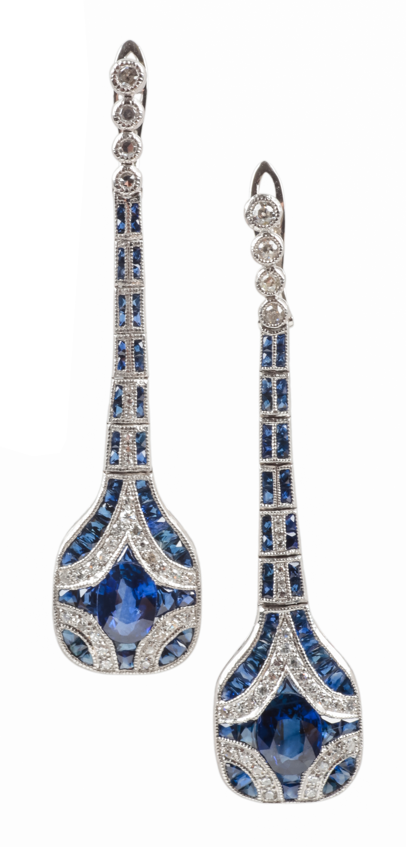 A PAIR OF ART DECO STYLE SAPPHIRE AND DIAMOND EARRINGS