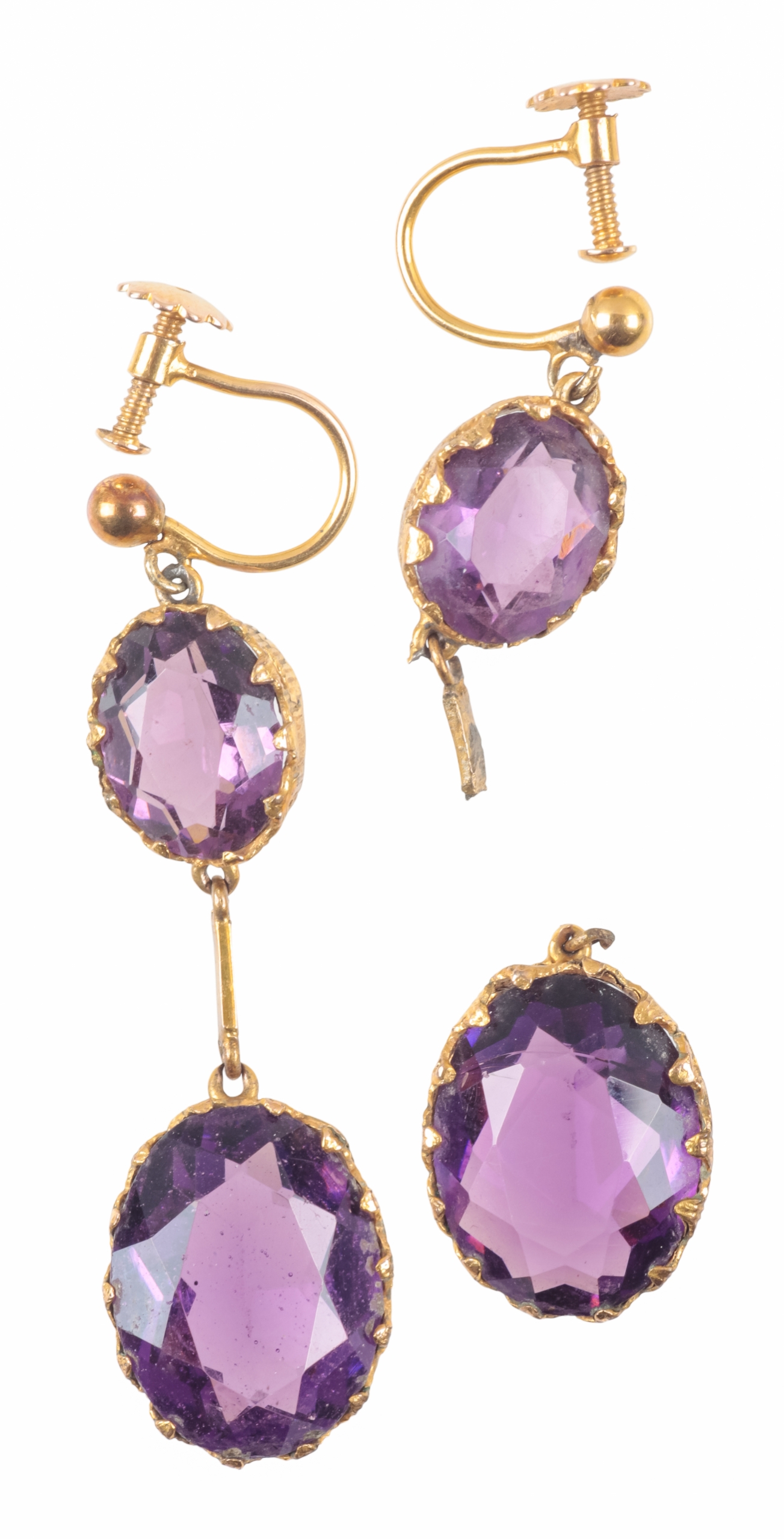 A PAIR OF AMETHYST COLOURED PASTE DROP EARRINGS