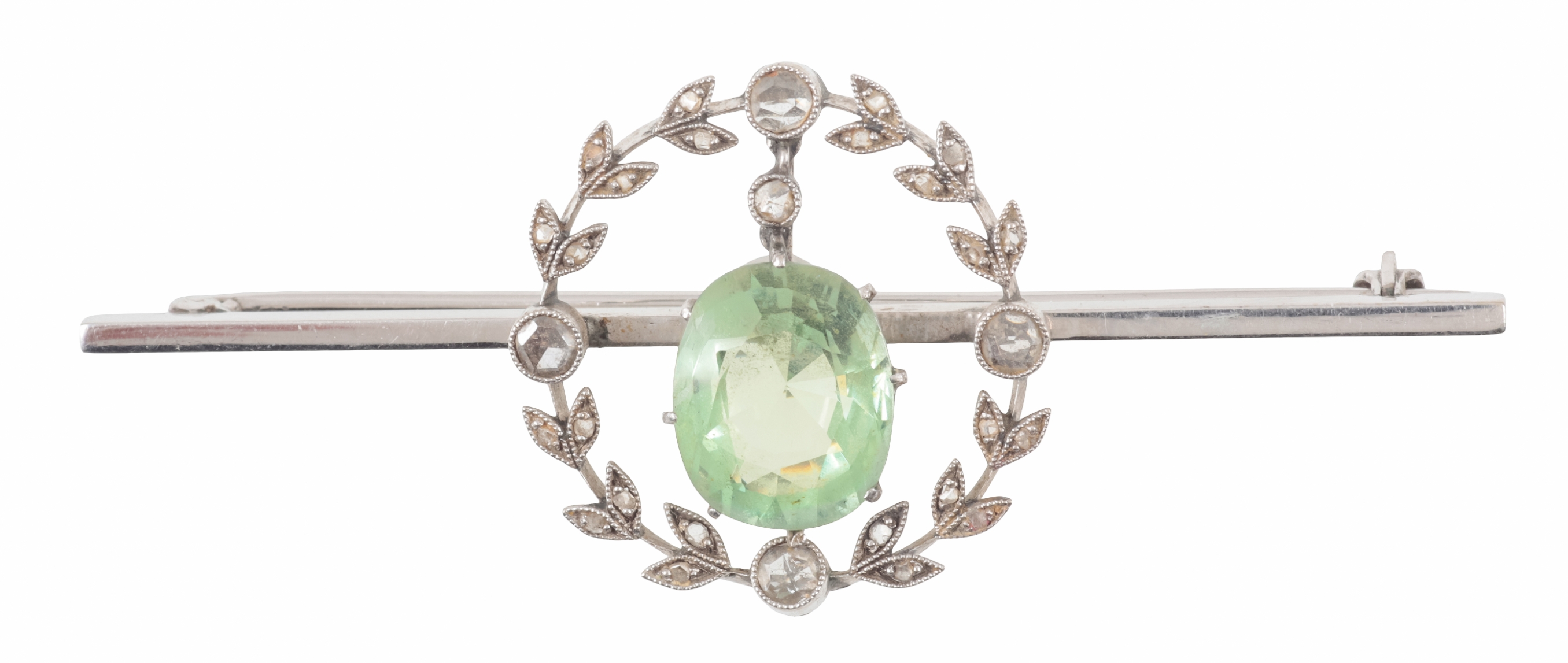 AN AQUAMARINE AND DIAMOND BAR BROOCH