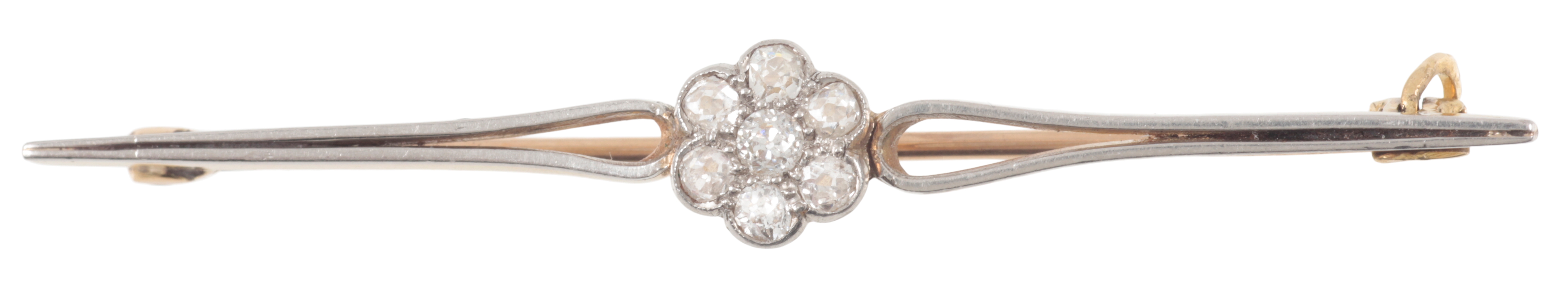 overall c. 59mm long, unmarked surface testing as 14ct and platinum, c. 4.2 grams