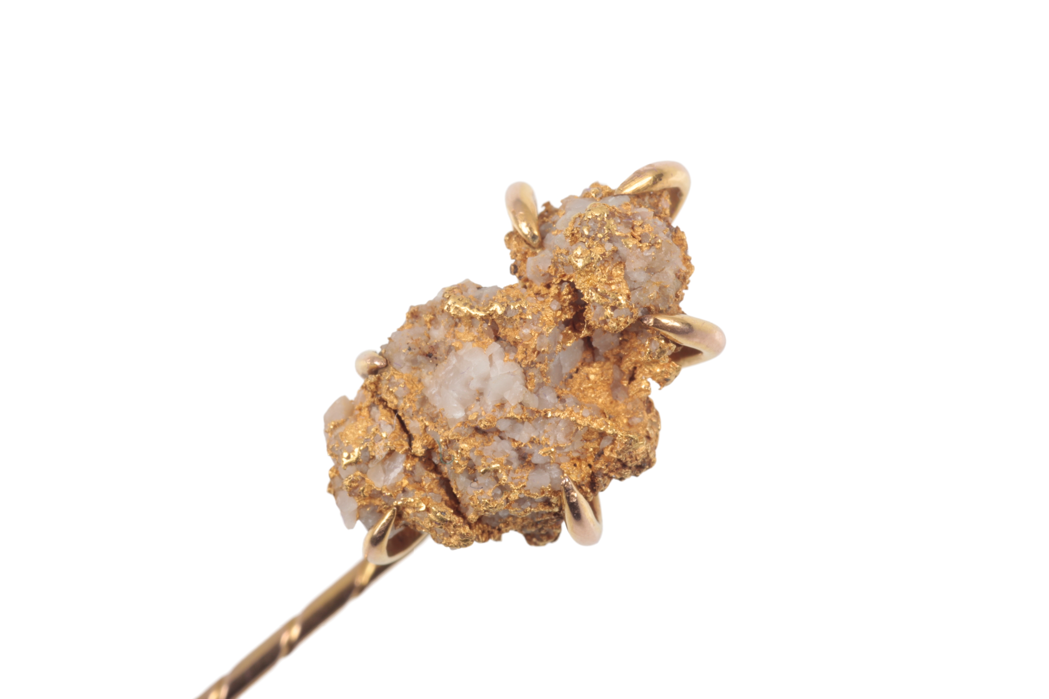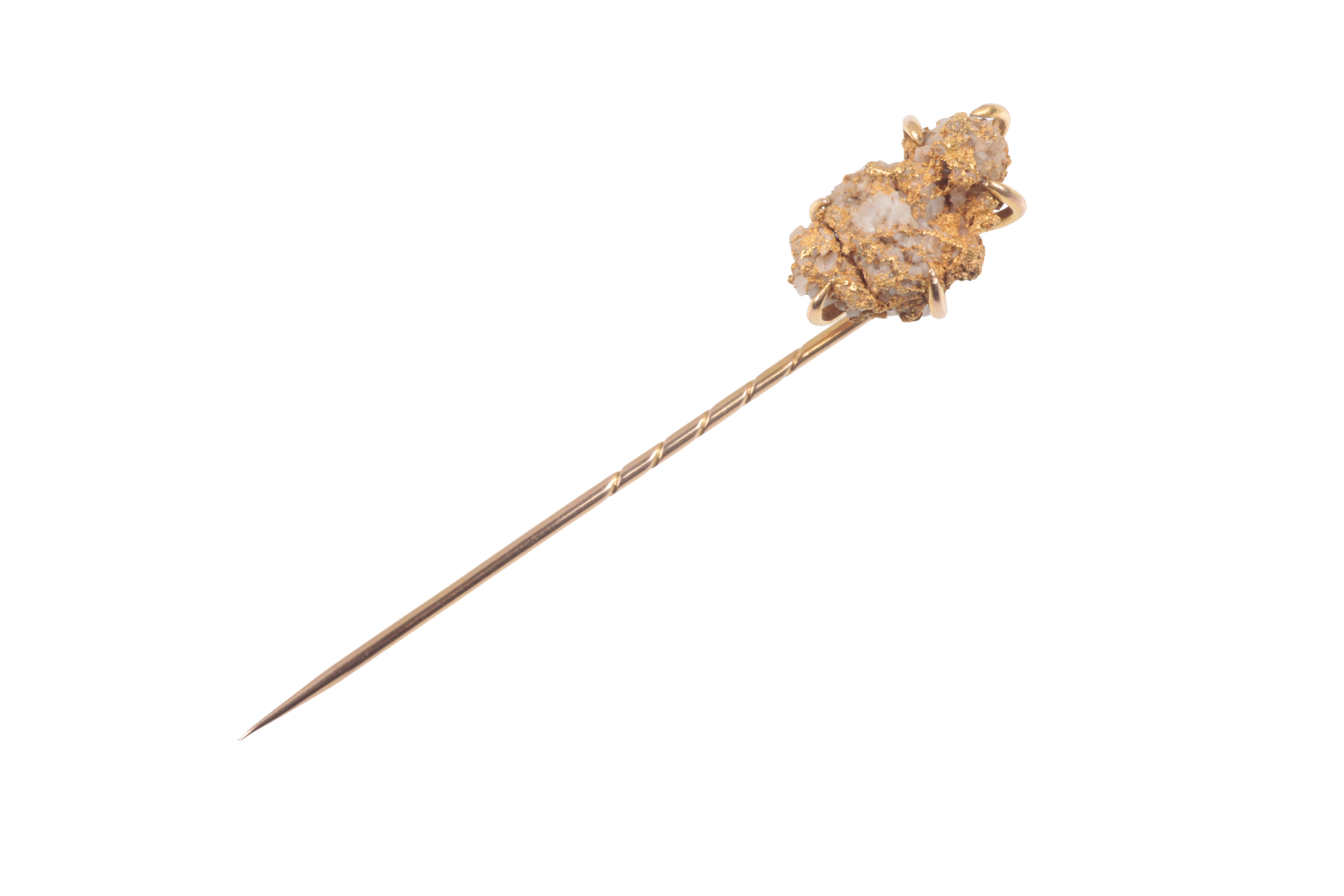 A GOLD NUGGET AND QUARTZ CRYSTAL STICK PIN