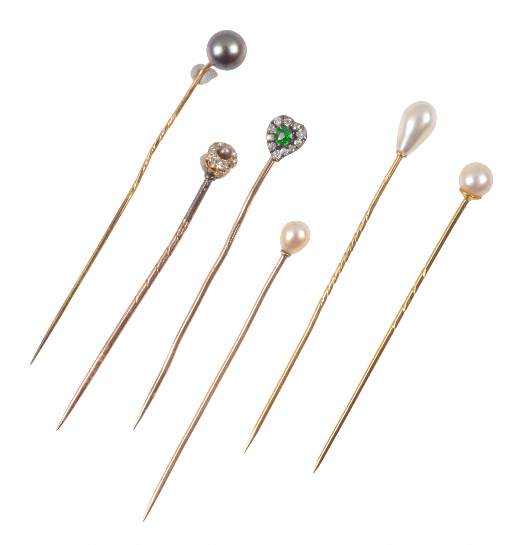 A COLLECTION OF SIX ASSORTED STICK PINS
