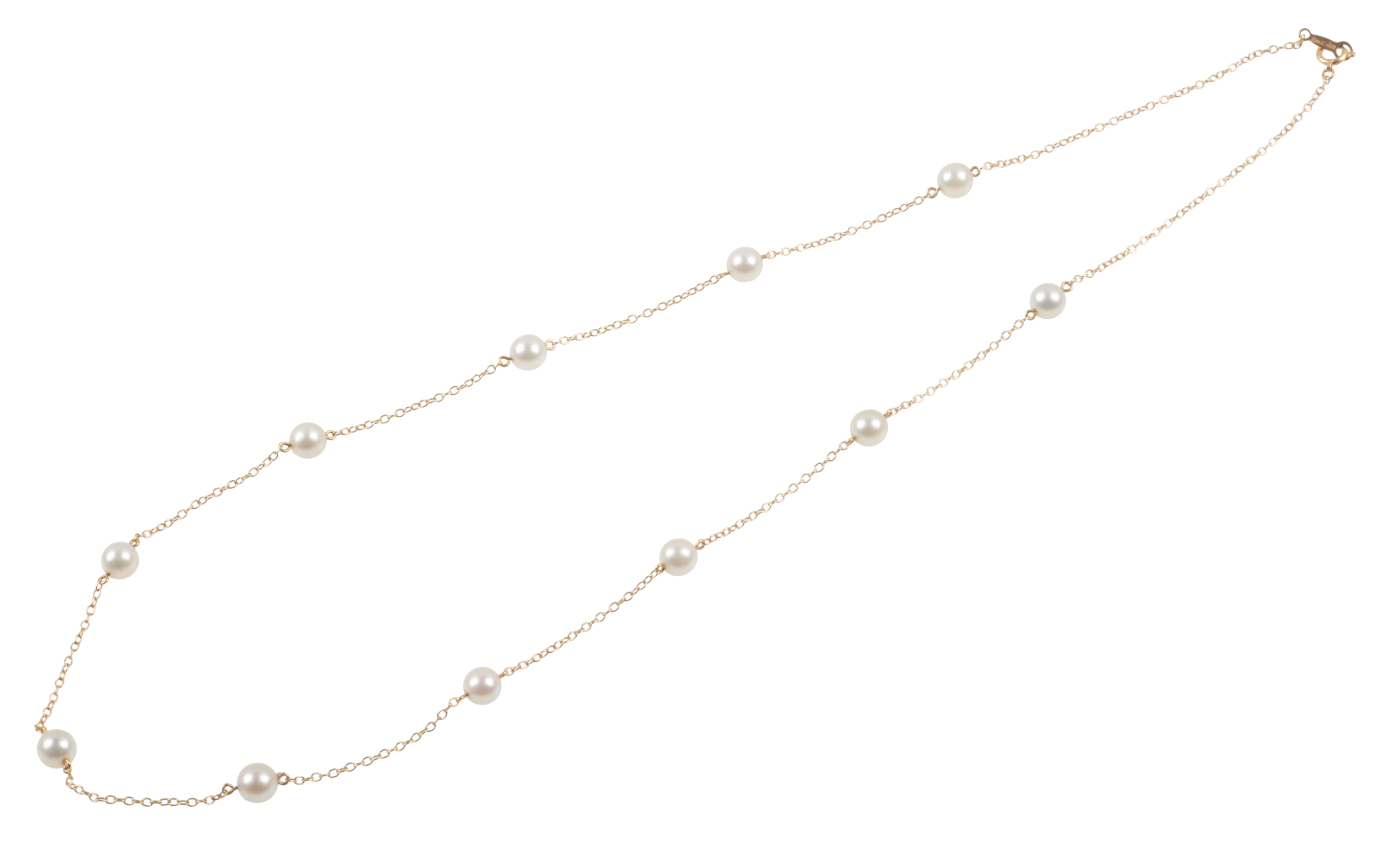 MIKIMOTO: A CULTURED PEARL AND 18CT GOLD CHAIN NECKLACE