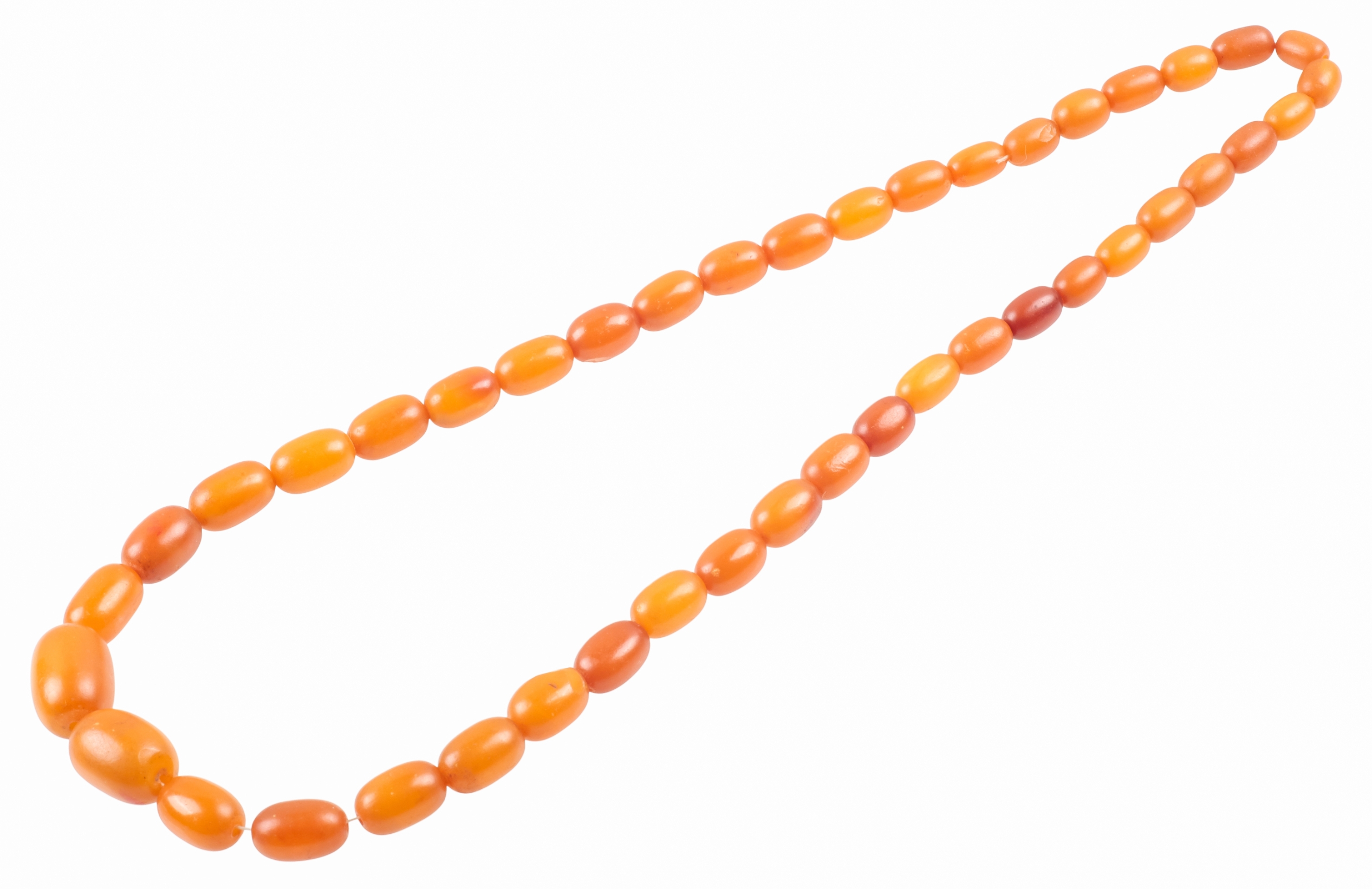 with graduated oval beads measuring c. 21.6mm to c. 13.5cm, c. 36cm long, c. 51 grams