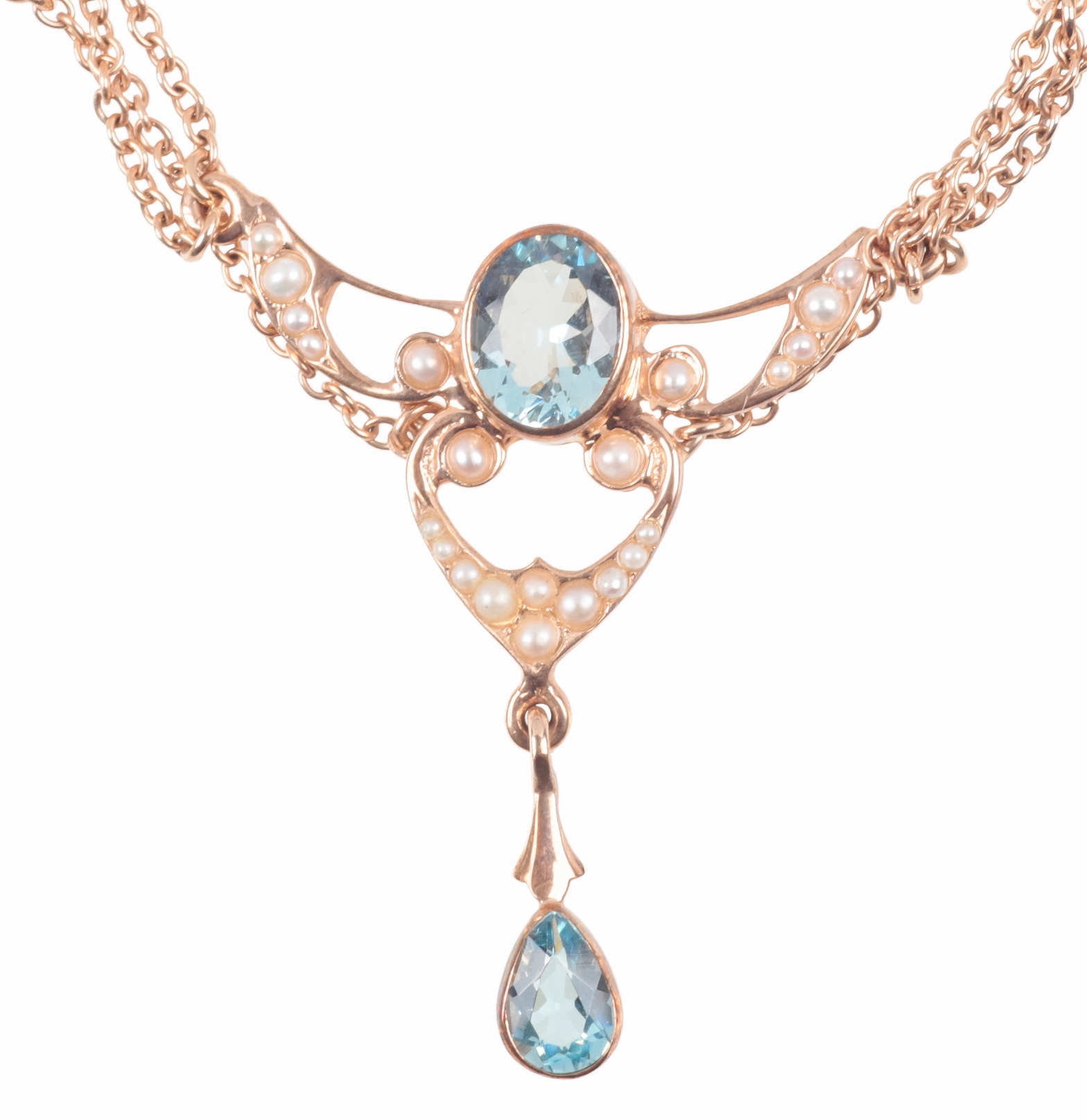 AN EDWARDIAN STYLE NECKLACE SET WITH AQUAMARINE AND SPLIT PEARLS