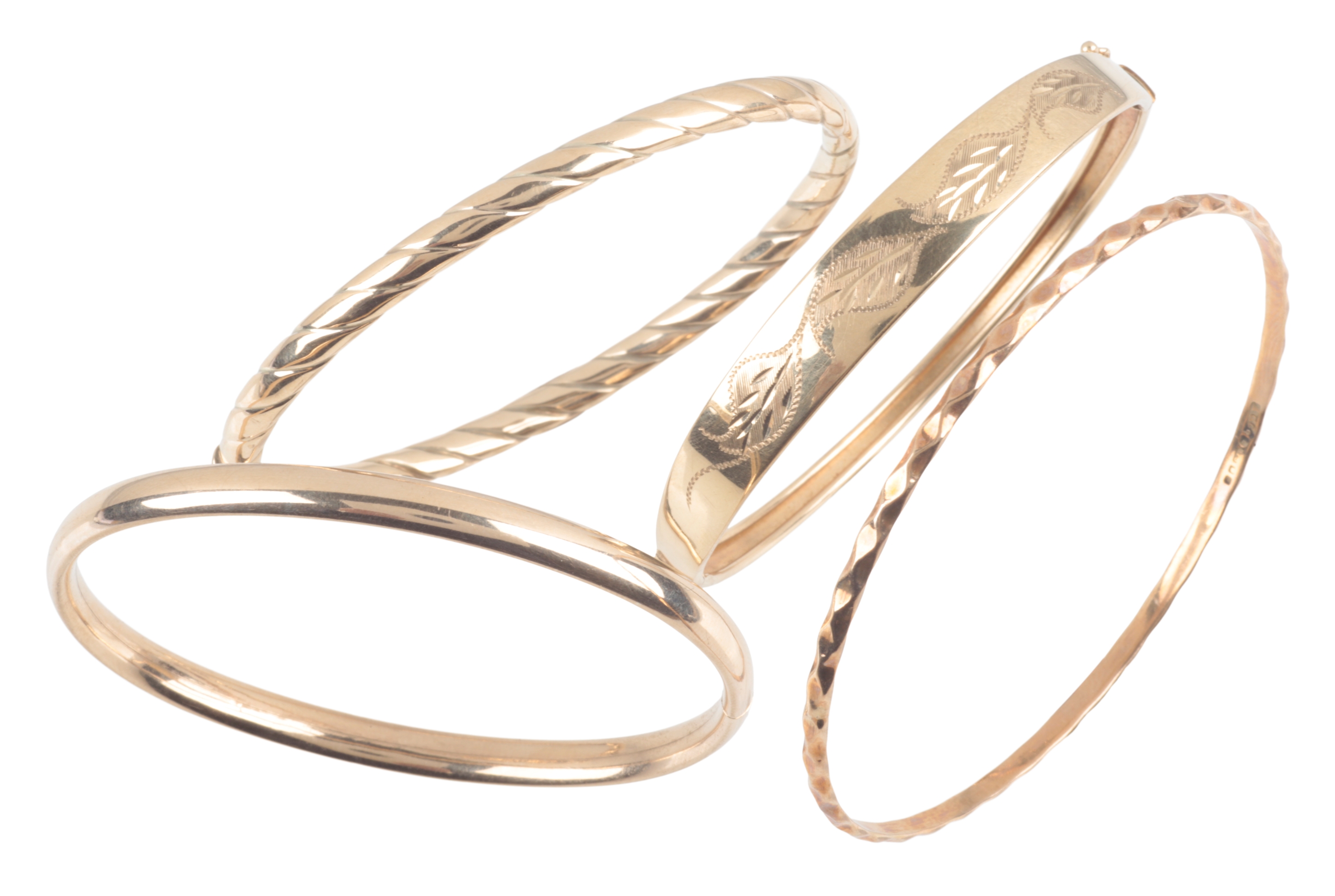 the largest c. 65mm diameter and the other three hinged with concealed clasps, c. 26.9 grams (4)