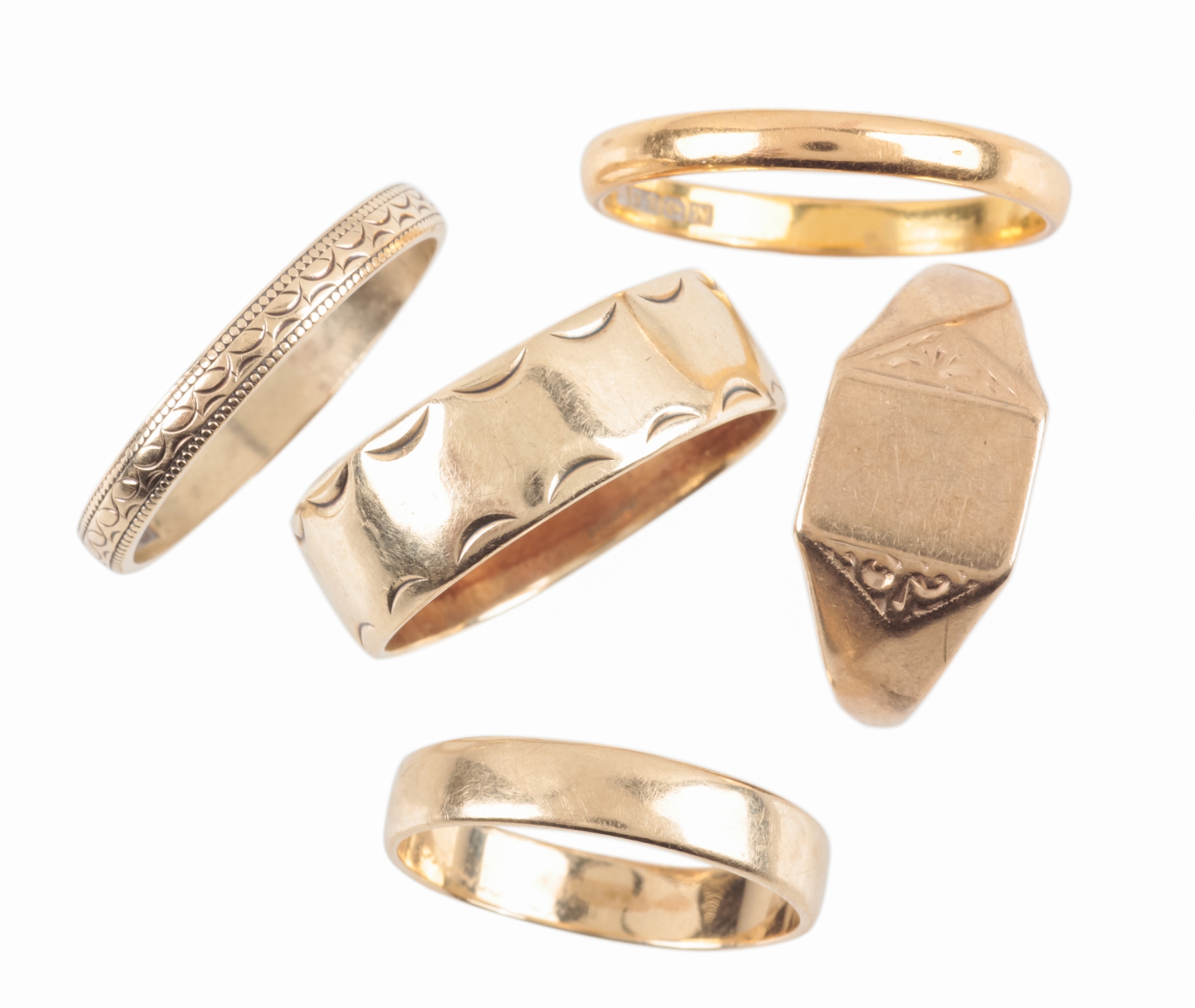 c. 2.6 grams; together with four 9ct gold rings, c. 9.6 grams (5)