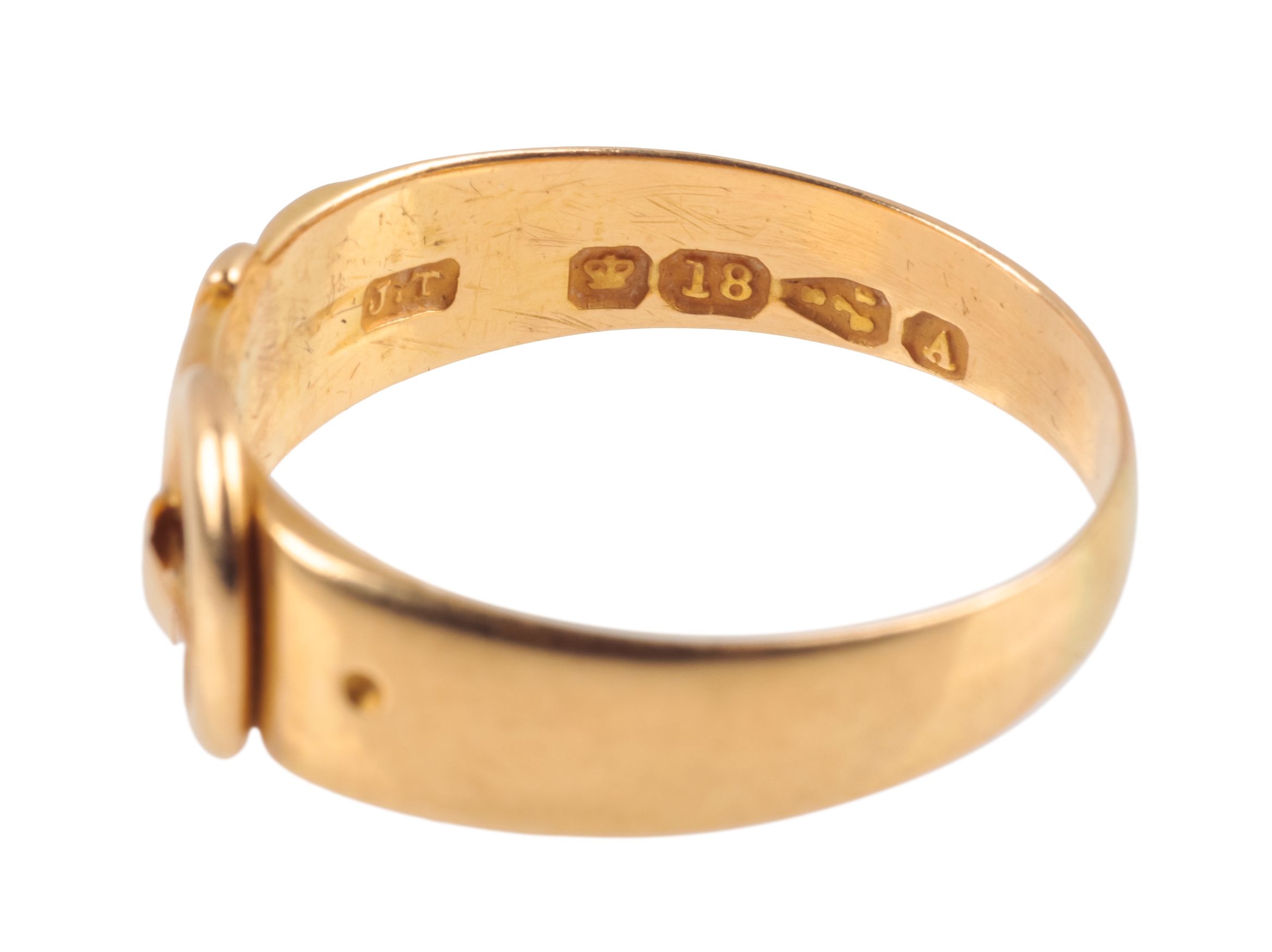 hallmarked 18ct, ring size P, c. 3.3 grams