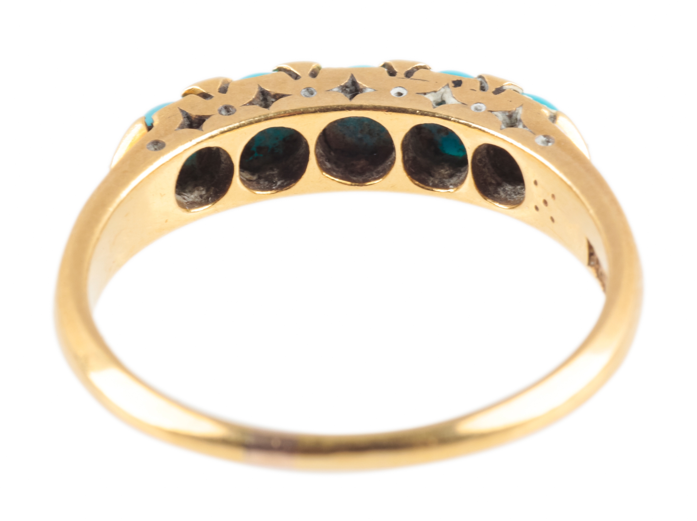 to an 18ct gold shank, ring size N, c. 2.9 grams total weight