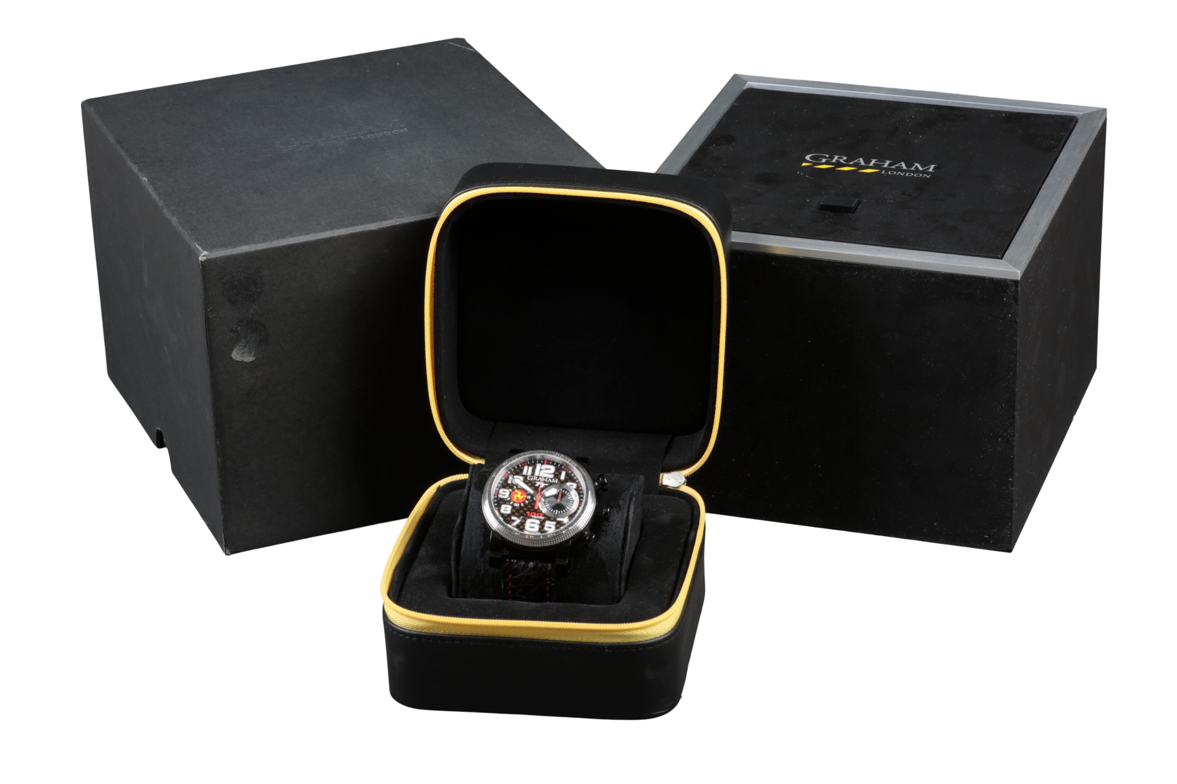 GRAHAM TT LIMTED EDITION: A STEEL BLACK WRISTWATCH