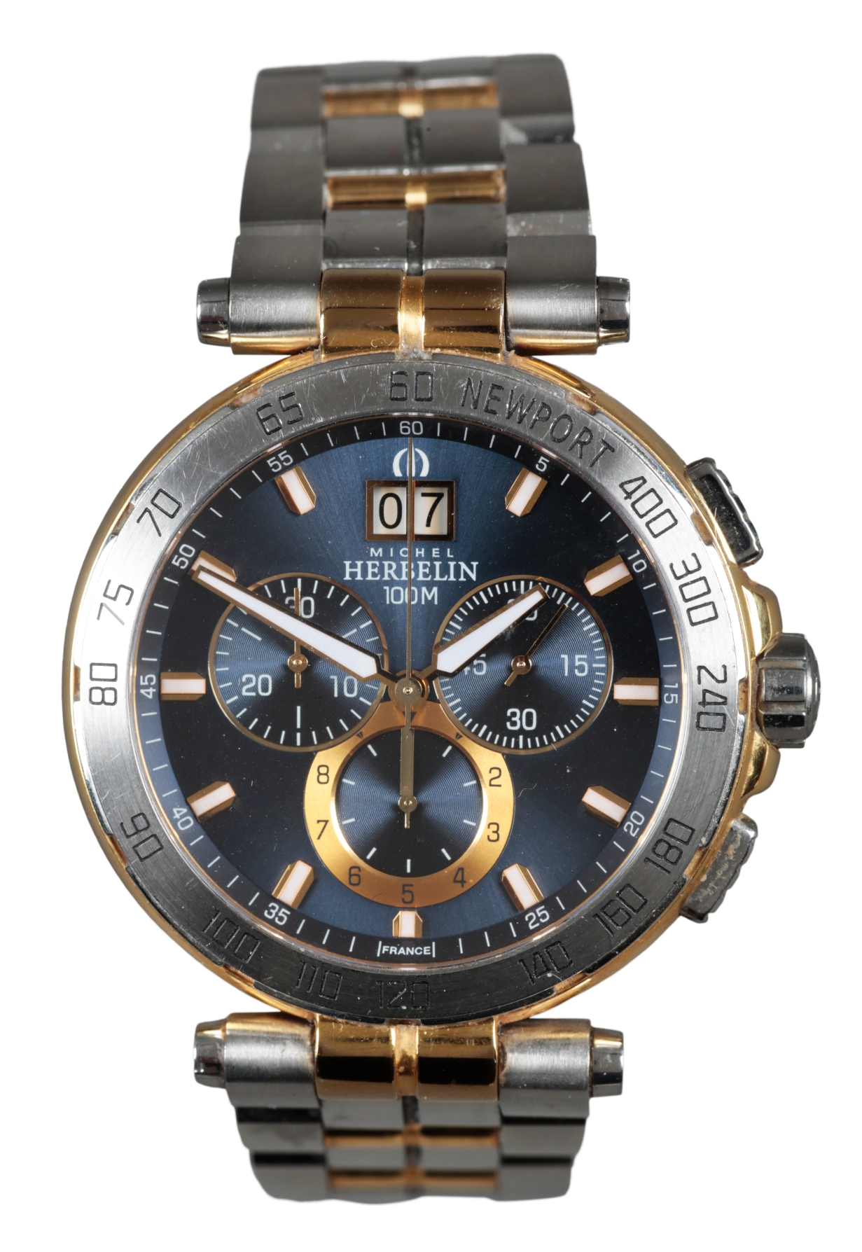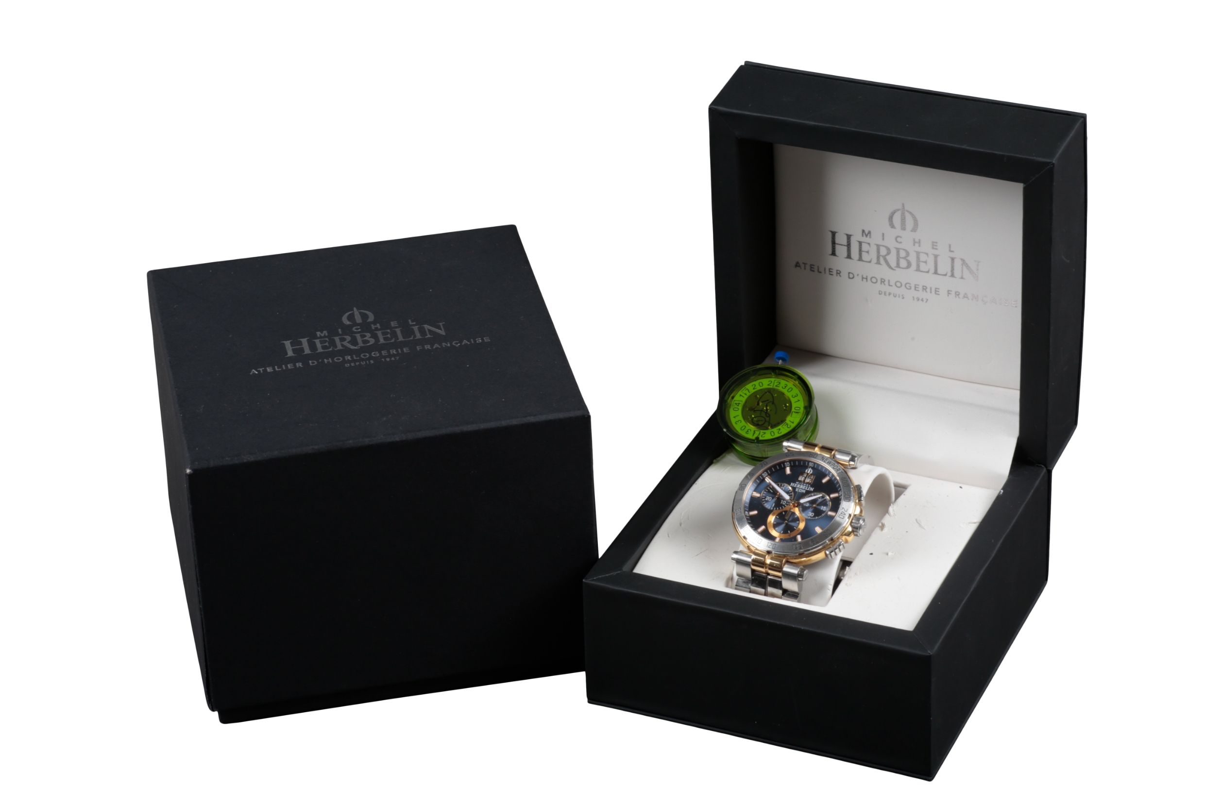 MICHEL HERBELIN: A STAINLESS STEEL GOLD-PLATED CHRONOGRAPH WRISTWATCH