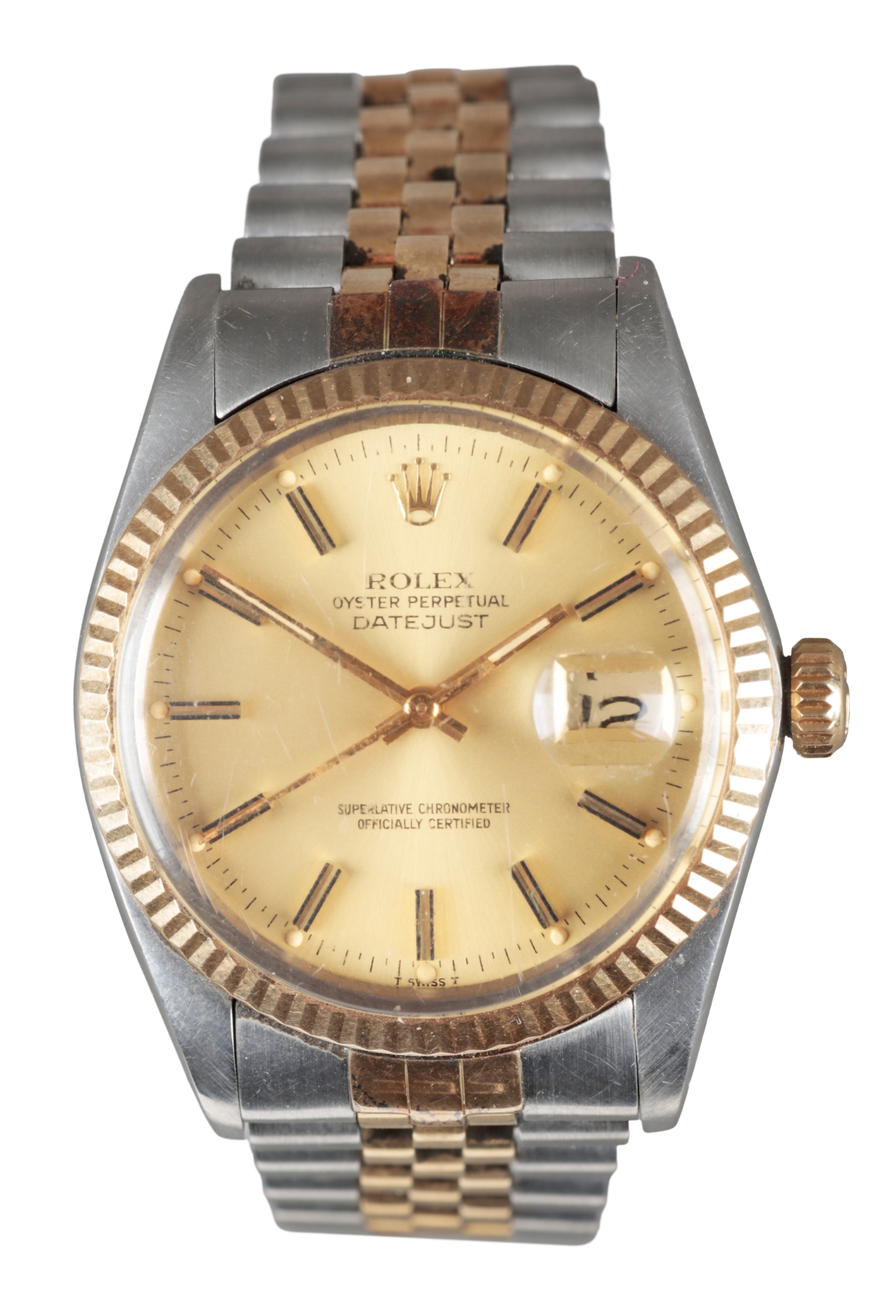 ROLEX OYSTER PERPETUAL DATEJUST: A STEEL AND GOLD BRACELET WATCH