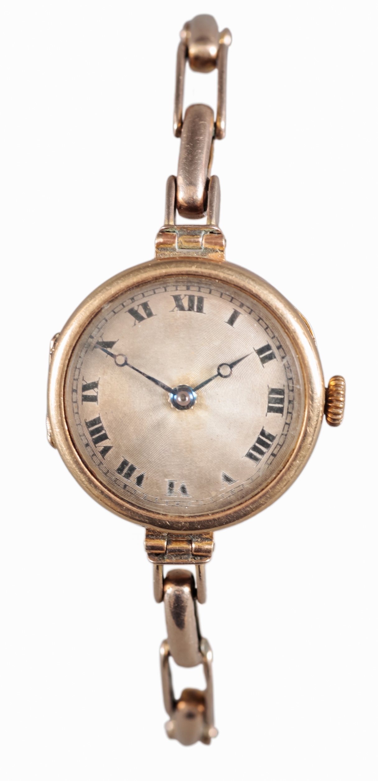 with manual wind movement, silver dial, black Roman numerals, dark blue steel hands, circa 1940s, case diameter approx. 25mm, 24.58g gross weight